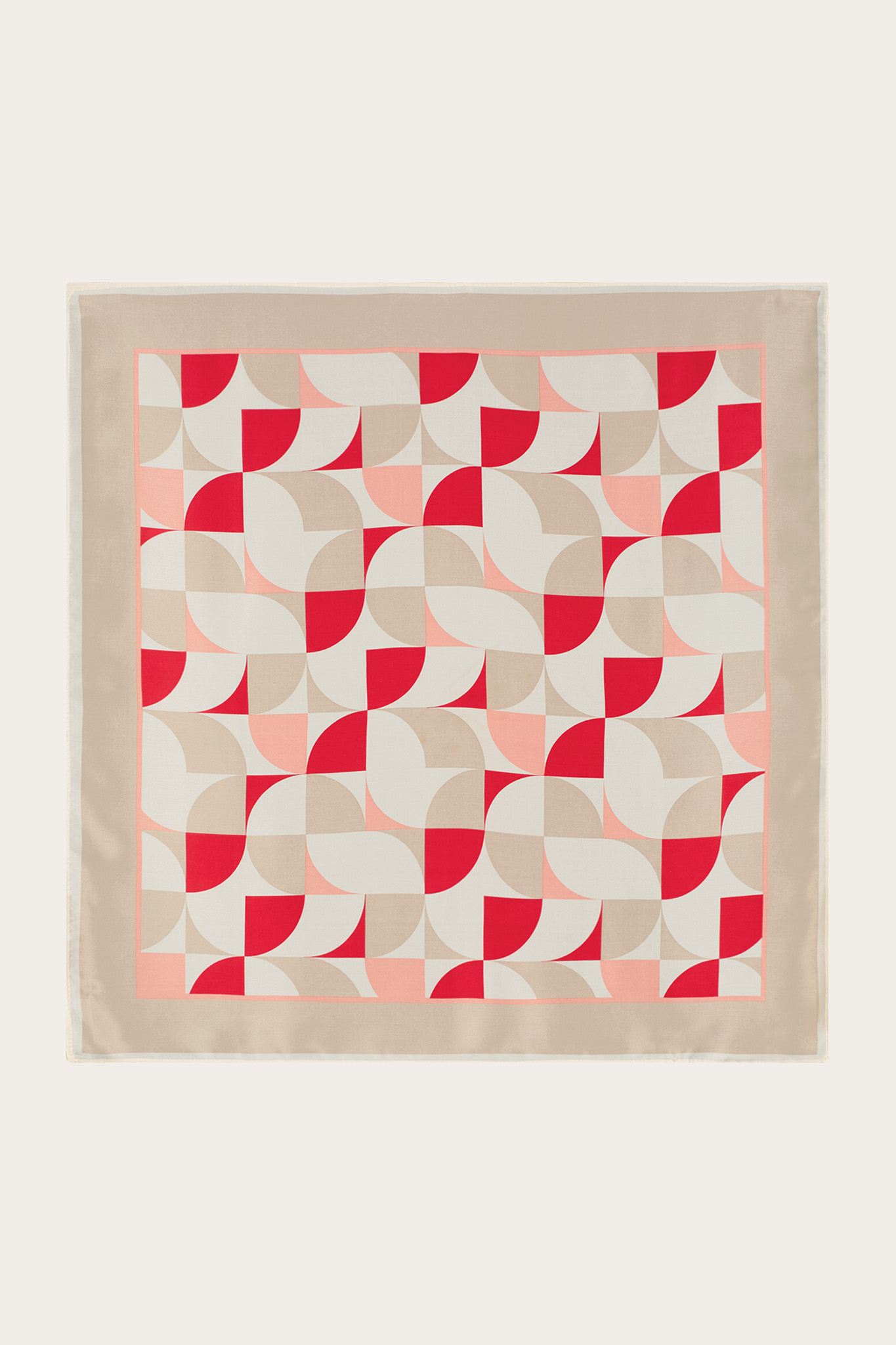 Kremowo-czerwona apaszka damska 87662 - 667551
