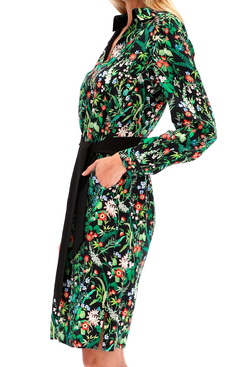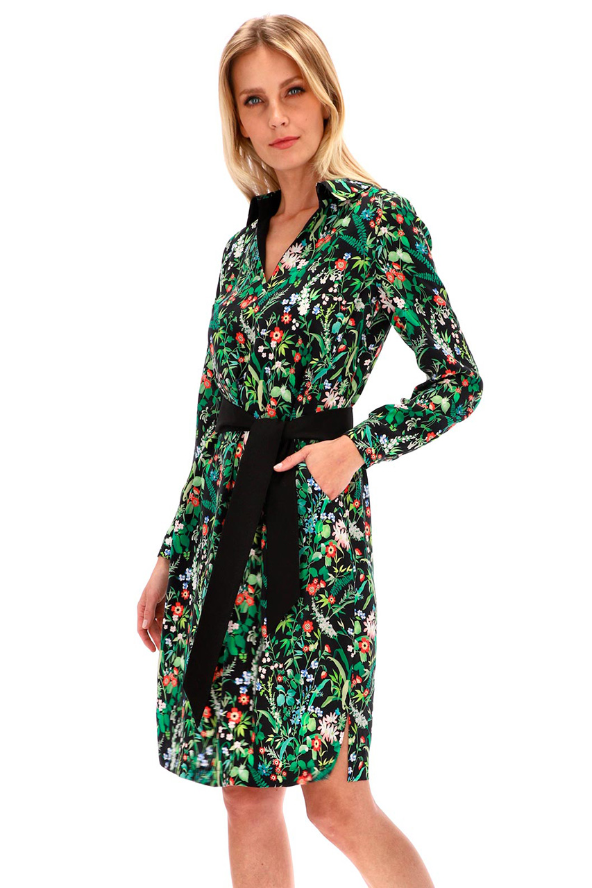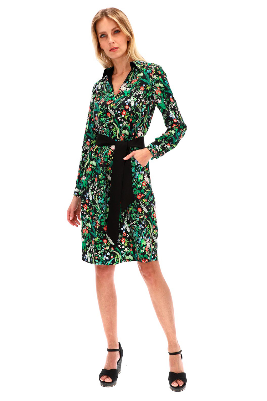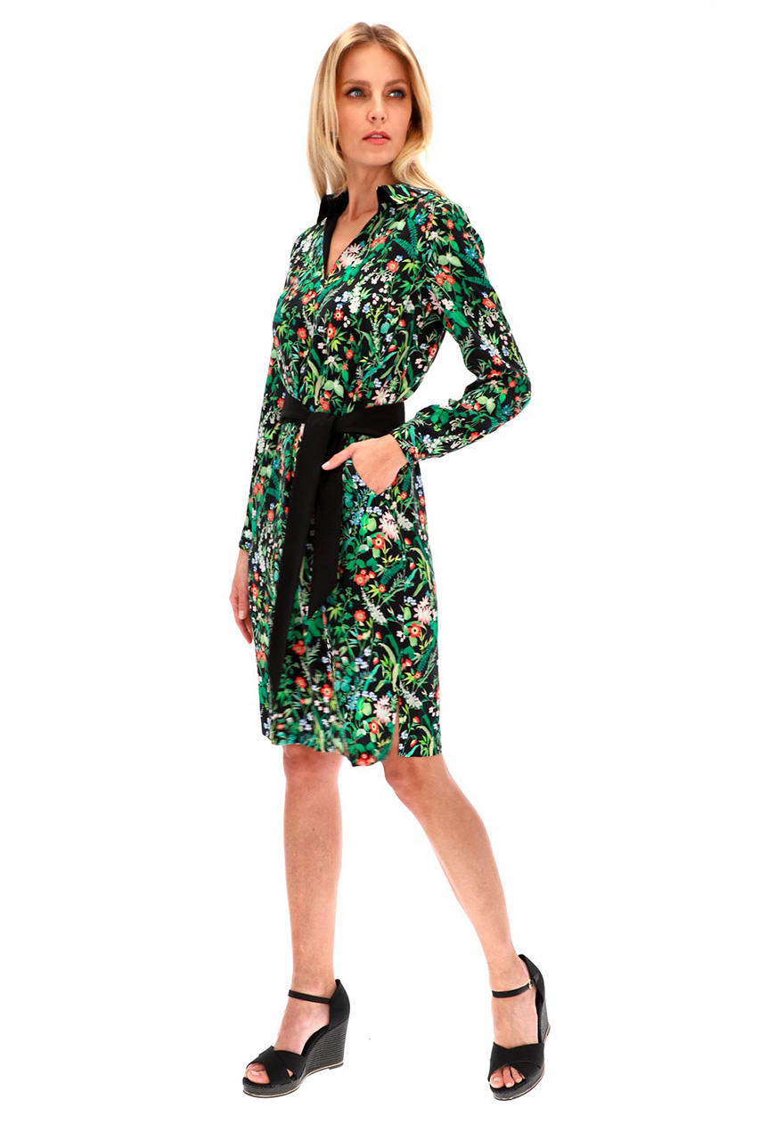 Lato oraz wysokie temperatury to czas, kiedy każda kobieta stawia na wygodę oraz delikatne tkaniny. Sukienka z soczystym, zielonym motywem kwiatowym to strzał w dziesiątkę, aby wyróżniać się z tłumu. Oferowany model posiada kołnierzyk, długi rękaw oraz kontrastowy, czarny pas. Co ważne, sukienka nie ma podszewki i jest wykonana w 100% z wiskozy, co korzystnie wpływa na komfort użytkowania. Zestaw sukienkę z cielistymi balerinami, torbą typu shopper, a w chłodniejsze dni z klasyczną marynarką, aby otrzymać elegancką stylizację do pracy.