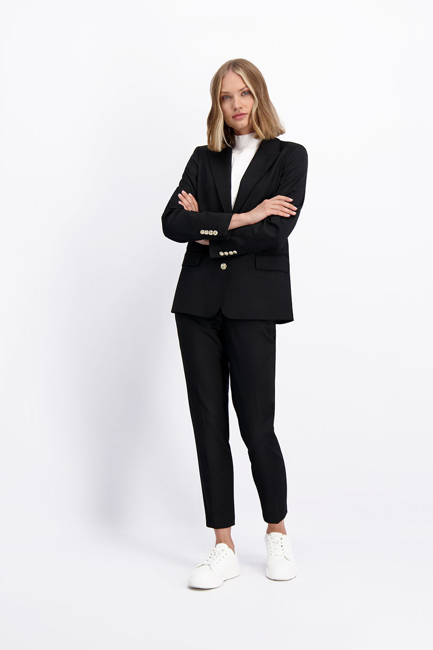 - 64% Poliester, 34% Wiskoza, 2% Elastan