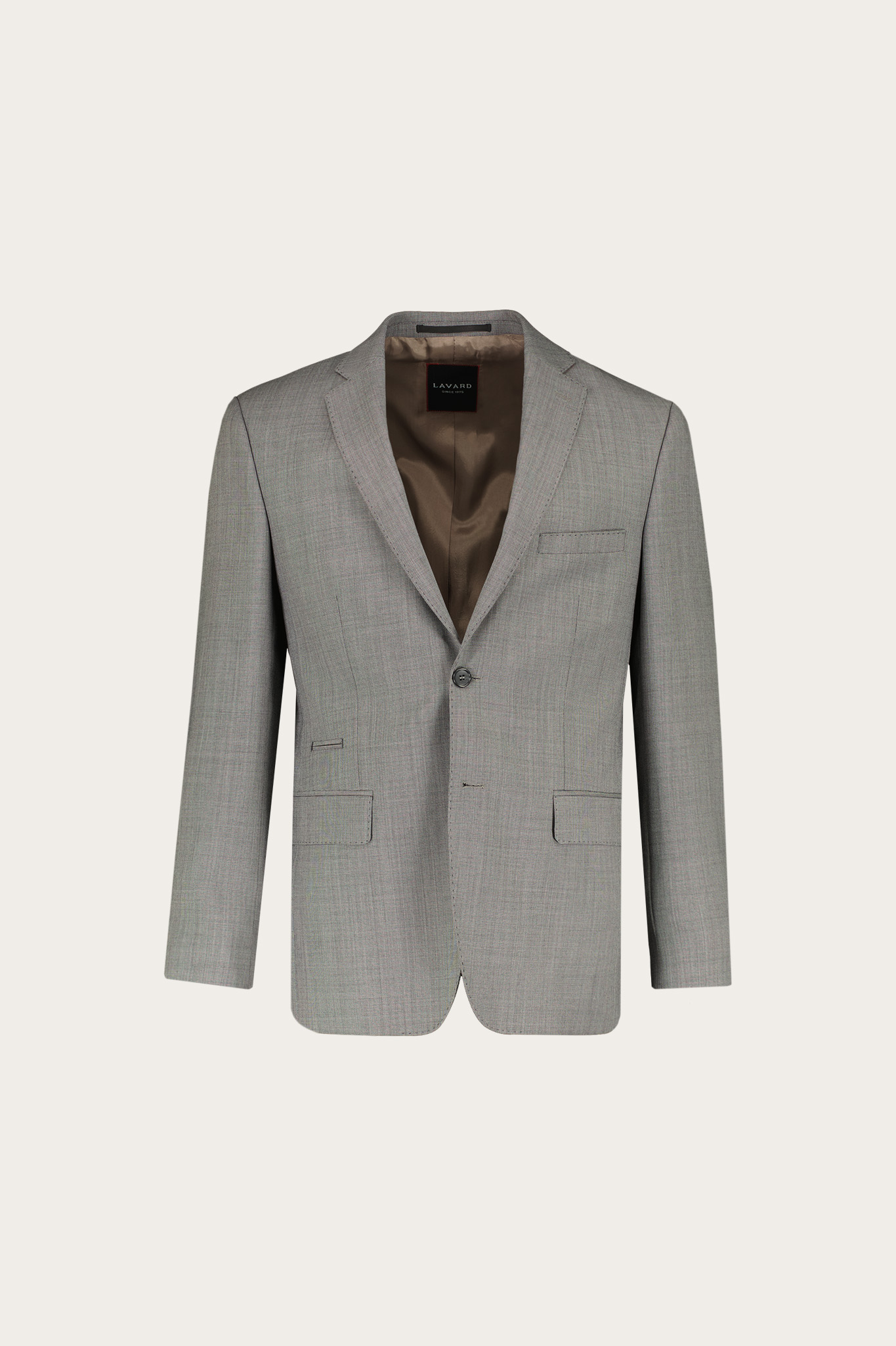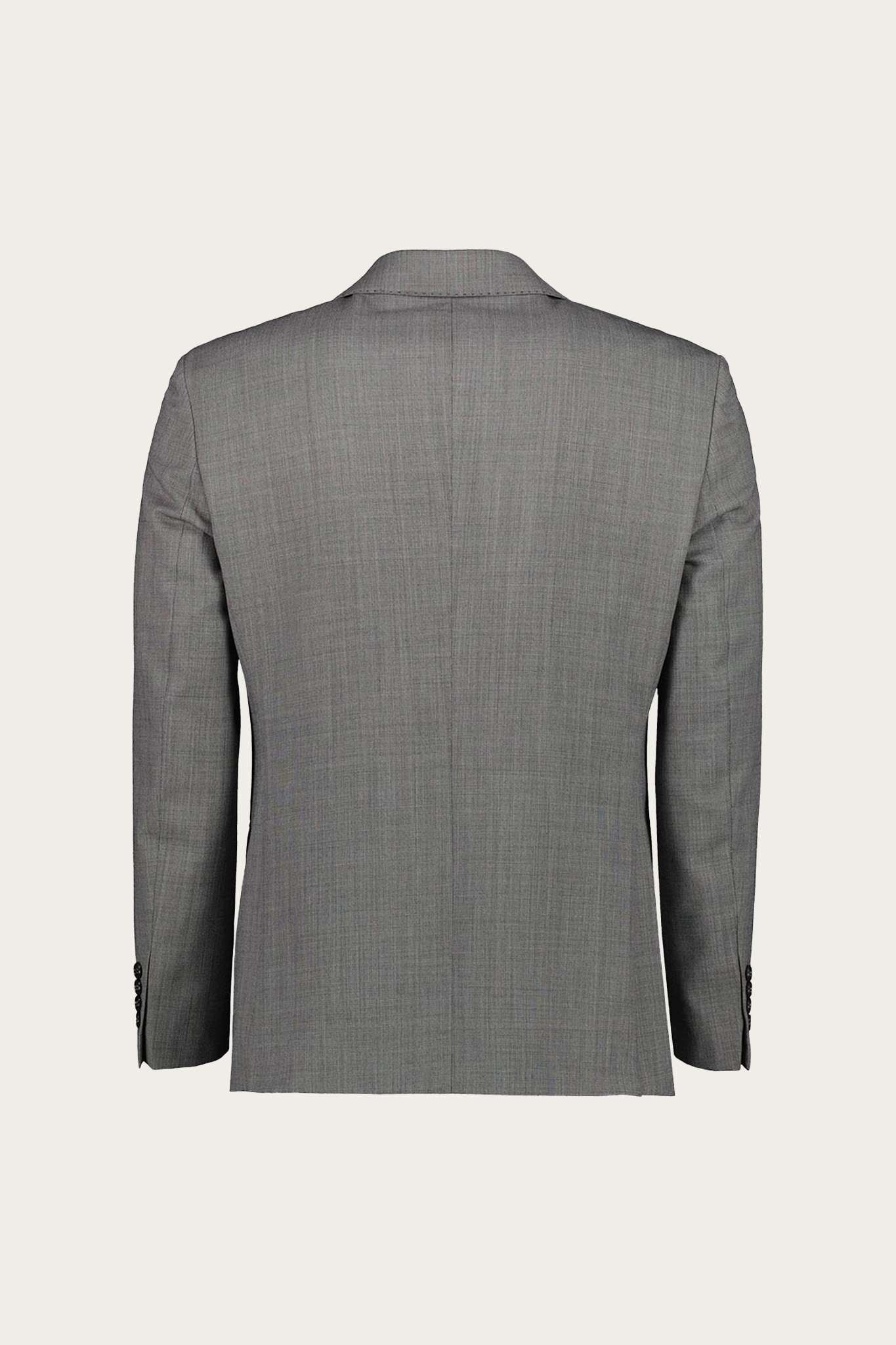 Szara marynarka uszyta z tkaniny z dodatkiem wełny. Wzdłuż krawędzi ozdobny szew AMF nawiązujący do tradycyjnego krawiectwa.