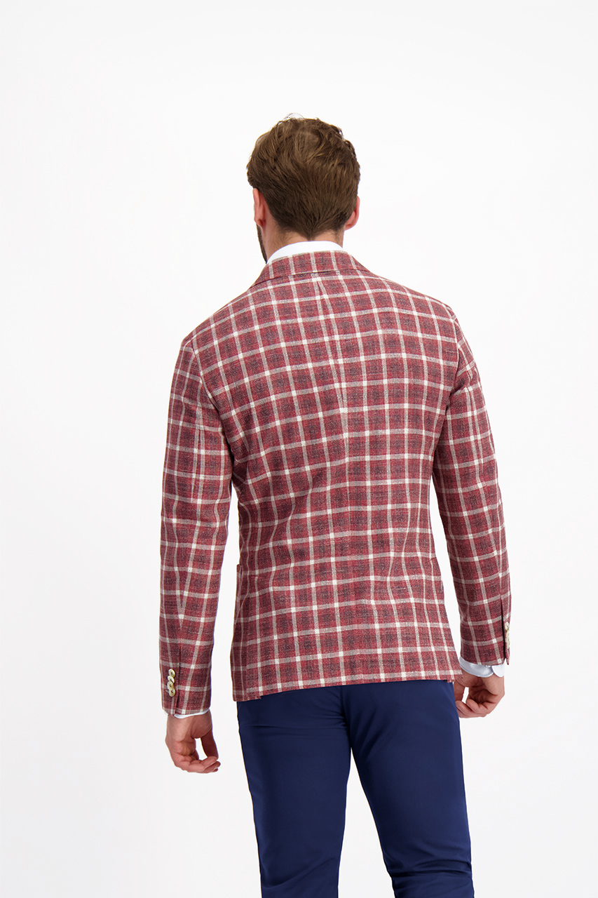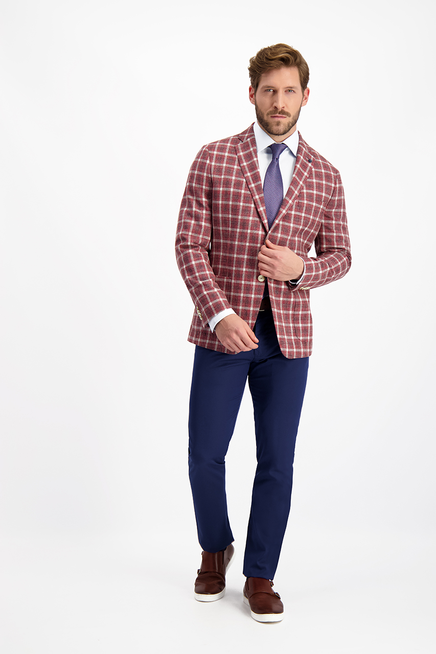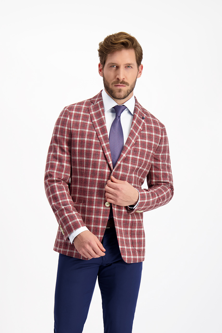 Marynarka męska w kratę wykonana z przyjemnej w dotyku tkaniny z dodatkiem bawełny. Ten energetyczny model przypadnie do gustu mężczyznom lubiącym nieszablonowe rozwiązania. Model o regularnym kroju z delikatną strukturą, świetnie urozmaici mniej formalne stylizacje. Propozycja w casualowym charakterze, posiada szerokie klapy oraz dwie kieszenie zakończone asymetryczną patką. Model uszyty z niesamowitą dbałością o detale. Marynarka fantastycznie prezentuje się z beżowymi spodniami chino. Zachwyci niejednego stylowego mężczyznę ceniącego wysoką jakość, komfort I modny design.