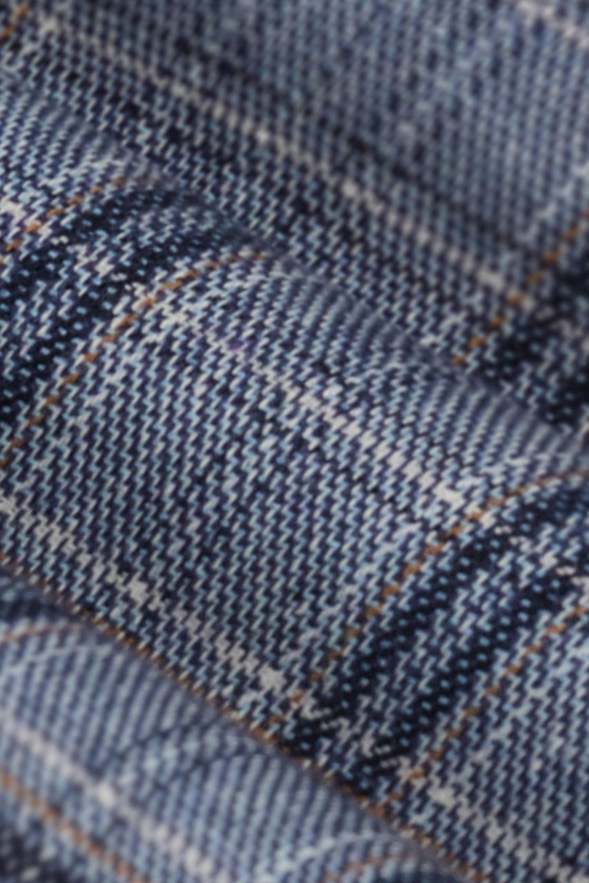 Marynarka w kratę uszyta z miękkiej tkaniny z wełną i bawełną. Model o klasycznym fasonie. Model ma 188 cm wzrostu. Prezentuje rozmiar 48.