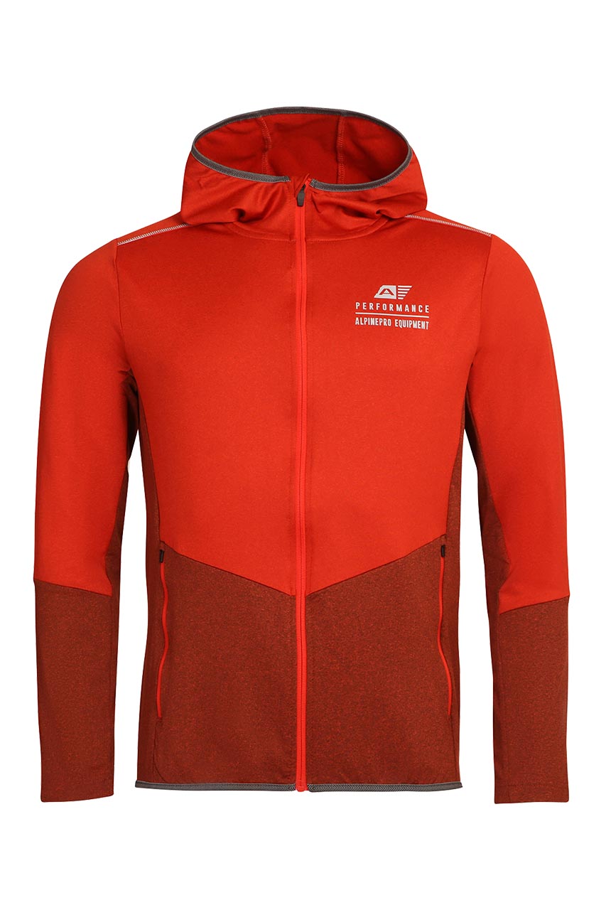 Bluza męska z kapturem utrzymana w energetycznym, ceglanym odcieniu. Model uszyty z szybkoschnącej i oddychającej tkaniny, która utrzymuje ciało w optymalnej temperaturze dzięki odprowadzaniu potu na zewnątrz. Ta zaawansowana technologicznie tkanina jest bardzo przyjemna w dotyku i doskonale dopasowuje się do sylwetki nie krępując przy tym ruchów. Co więcej, tkanina jest odporna na uszkodzenia i częściowo wiatroszczelna. Dodatkowo bluza posiada elementy odblaskowe, dzięki czemu użytkownik jest widoczny w półmroku, ciemności czy nawet podczas deszczu. To fantastyczna propozycja, która przypadnie do gustu wszystkim fanom aktywnego wypoczynku.
