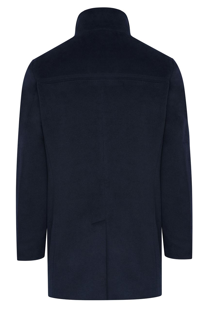 Elegancki męski płaszcz na stójce w ciemnym odcieniu granatu. Wykonany z przyjemnej w dotyku, gładkiej tkaniny. Zapinany na jeden rząd ciemnych guzików. Model posiada z przodu dwie praktyczne kieszenie oraz dwie wewnątrz. Na ramionach i przy rękawach ozdobne przeszycia. Płaszcz o regularnym kroju i uniwersalnym fasonie to obowiązkowa pozycja w szafie każdego mężczyzny.