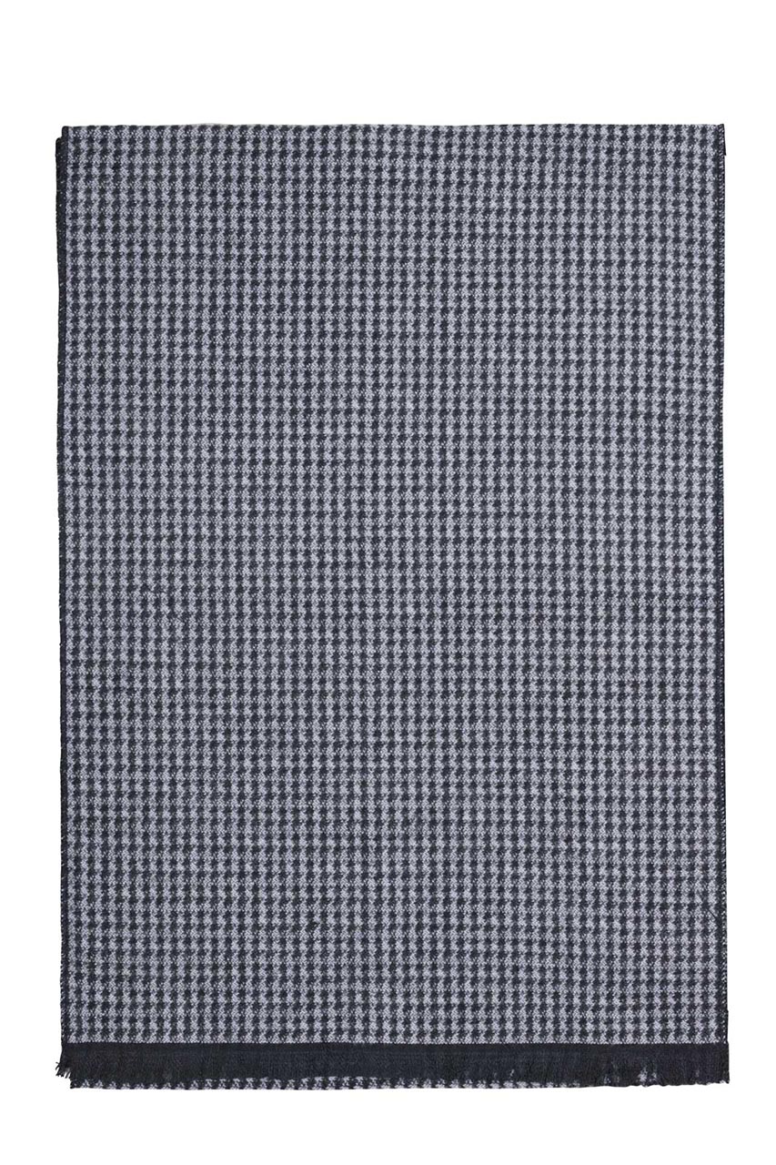 Męski szal w biało-czarną pepitkę. Wykonany z przyjemnego w dotyku materiału. Model dwustronny. Wymiary szalika to 30x180 cm. Doskonały dodatek do casualowych stylizacji.