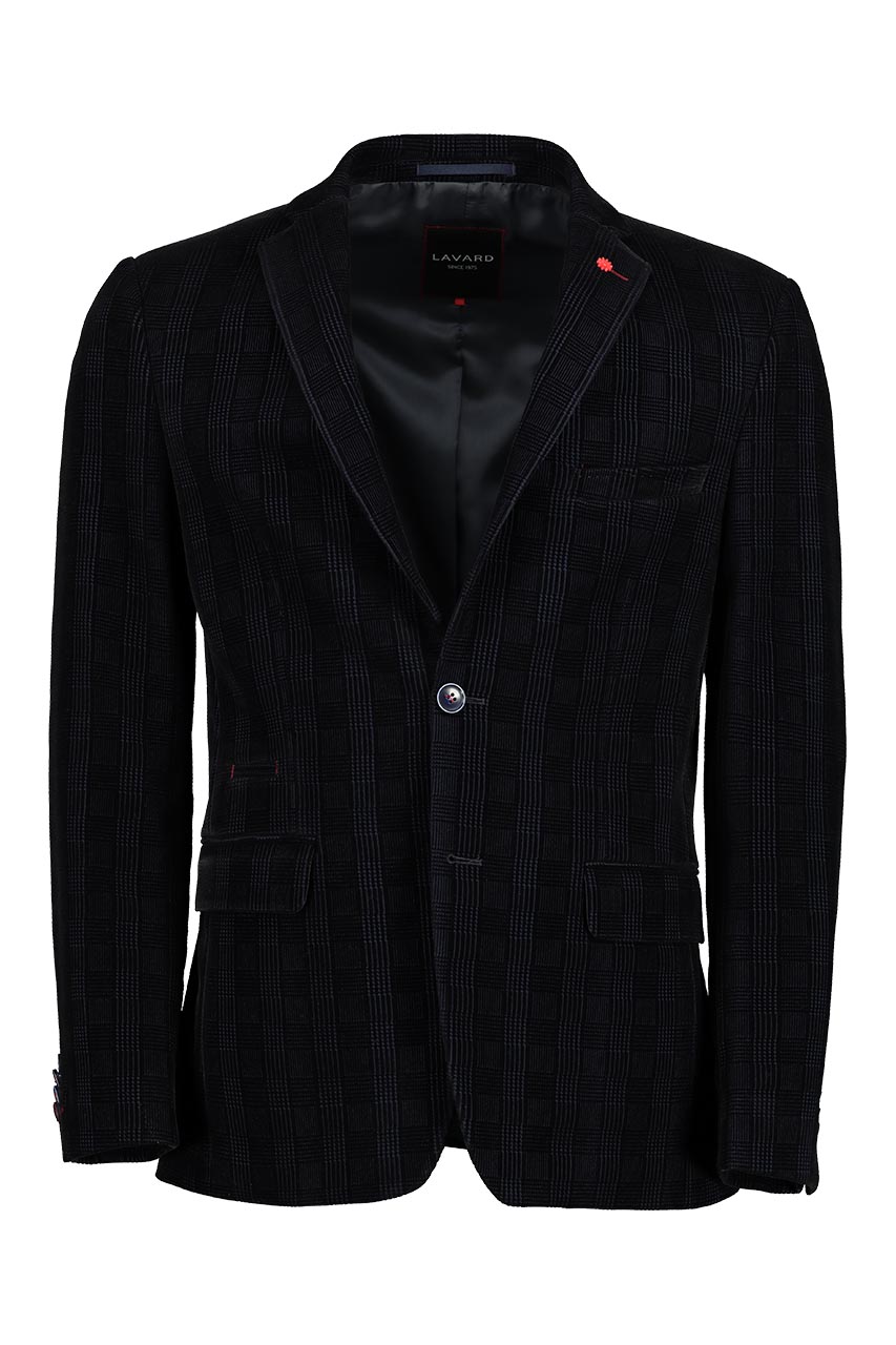 Marynarka męska z bardzo przyjemnej w dotyku sztruksowej tkaniny. Model w modny deseń kraty z oryginalnym kontrastowym akcentem w postaci czerwonego pinu w kształcie kwiatka. Marynarka o dopasowanym kroju, świetnie sprawdzi się w eleganckich stylizacjach, może nawet zastąpić okrycie podczas wiosennych spacerów. Fantastycznie prezentuje się z granatowymi spodniami chino i lekkim golfem.