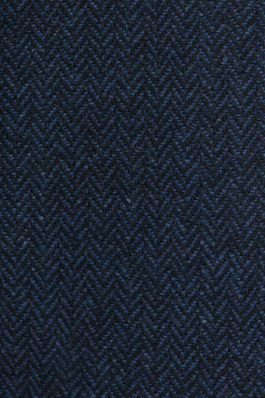 Casualowa marynarka utrzymana w granatowej kolorystyce. Wykonana w 95% z wysokiej jakości wełny. Domieszka włókien syntetycznych korzystnie wpływa na komfort użytkowania. Model jednorzędowy z dopinanym, dodatkowym kołnierzem i łatami na łokciach, co dodaje stylowego charakteru. Marynarka posiada kieszenie nakładane z przodu i jedno rozcięcie z tyłu. Model w deseń jodełki z szerokimi klapami. Bardzo dobrze sprawdzi się w miejskich stylizacjach.