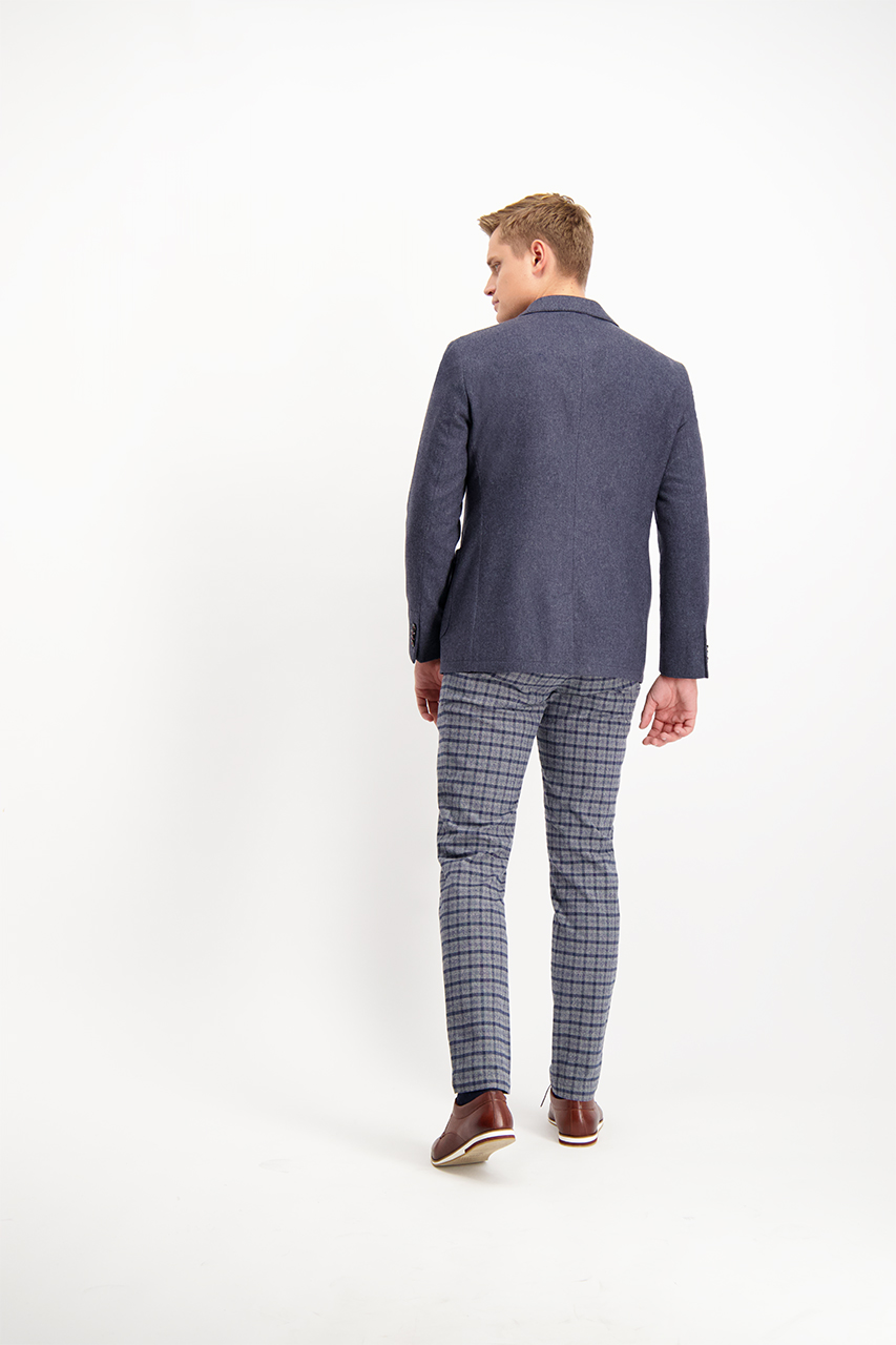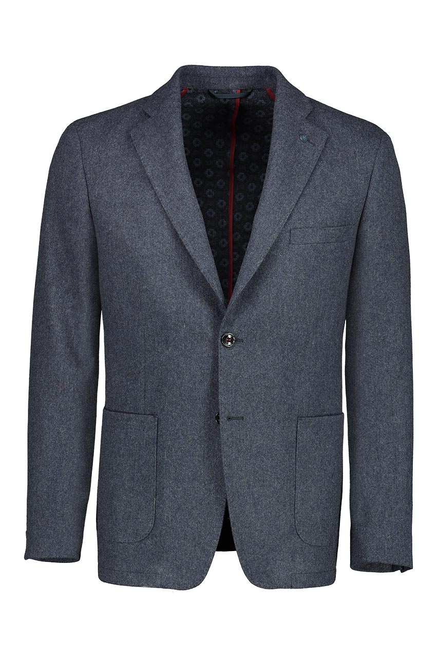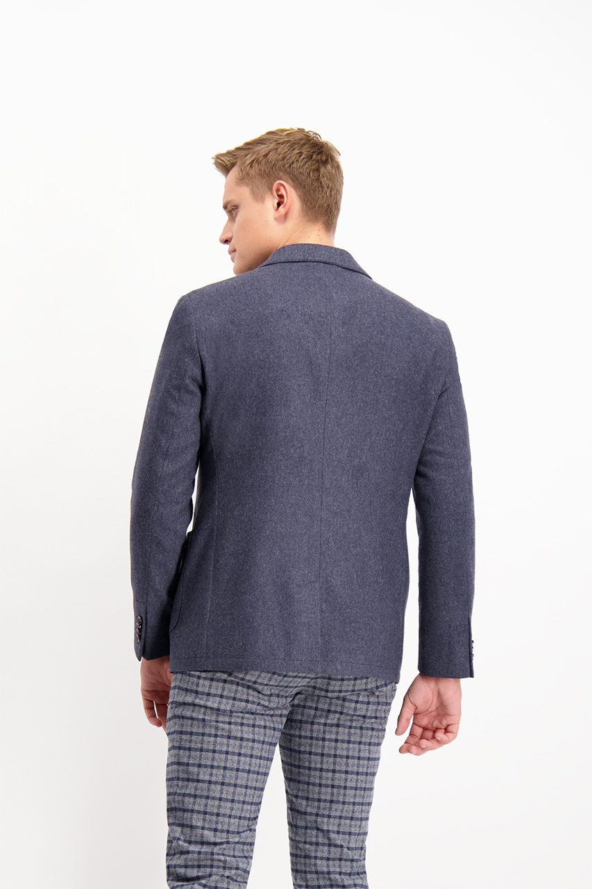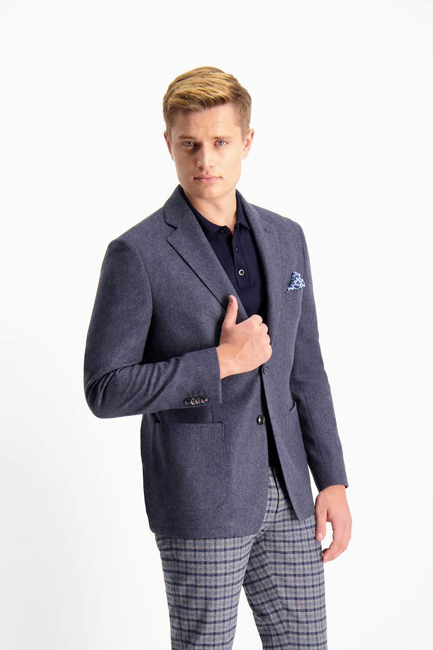 Granatowa marynarka męska sportowa, wykonana z najwyższej jakości wełny. Dodatek włókien syntetycznych wpływa korzystnie na komfort użytkowania. Propozycja o regularnym kroju, zapinana na dwa guziki. Posiada dwie nakładane kieszenie oraz jedną kieszeń piersiową. Świetna propozycja do miejskich zestawień, fantastycznie czuje się w towarzystwie takich kolorów jak beż, bordo, granat czy biel.