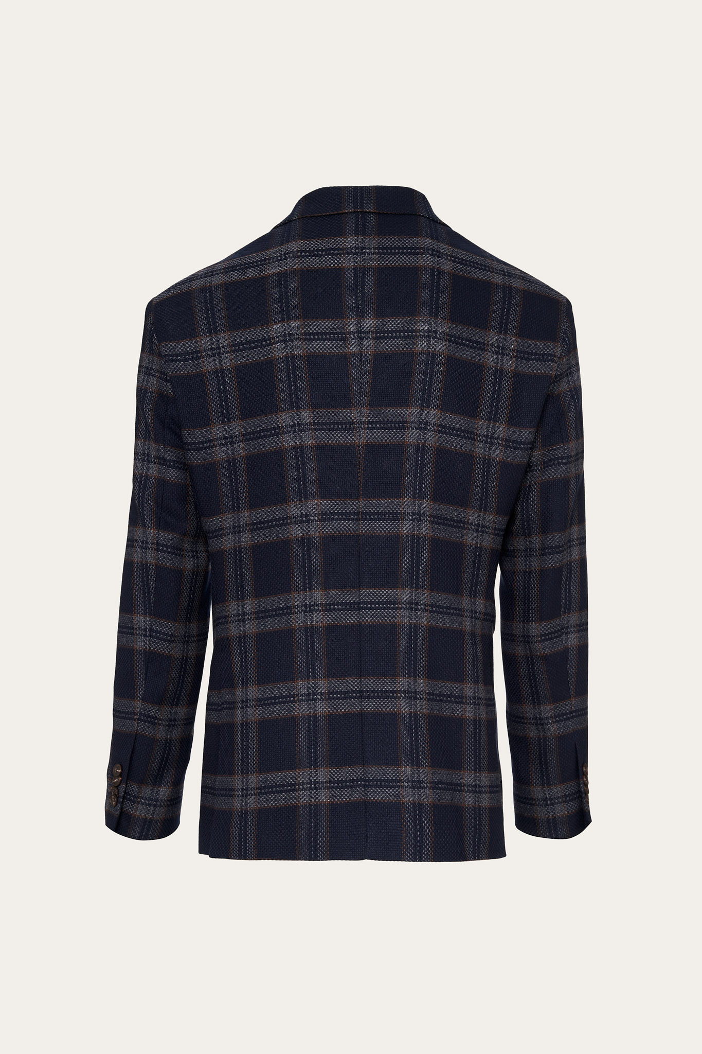 Stylowa i nowoczesna granatowa marynarka męska to klasyczna elegancja z wyrazistymi akcentami. Wykonana z wysokiej jakości mieszanki tkanin zapewniających trwałość, odporność na zagniecenia i wyjątkowy komfort noszenia. Ponadczasowy deseń w kratę w odcieniach granatu nadaje marynarce unikalnego charakteru, subtelnie przełamując klasyczną elegancję. Jednorzędowe zapięcie na guziki to ukłon w stronę nowoczesnych trendów, które łączą minimalizm z wyrafinowanym stylem. Szerokie klapy podkreślają klasyczne szycie, a regularny krój marynarki gwarantuje pożądaną wygodę i idealne dopasowanie do sylwetki. Ta granatowa marynarka w kratę to doskonały wybór na różne okazje – sprawdzi się zarówno w stylizacjach biznesowych, jak i mniej formalnych zestawach. Można ją nosić z eleganckimi spodniami i koszulą, tworząc formalny look, lub zestawić z chinosami i golfem, uzyskując w ten sposób modny, smart casualowy outfit.