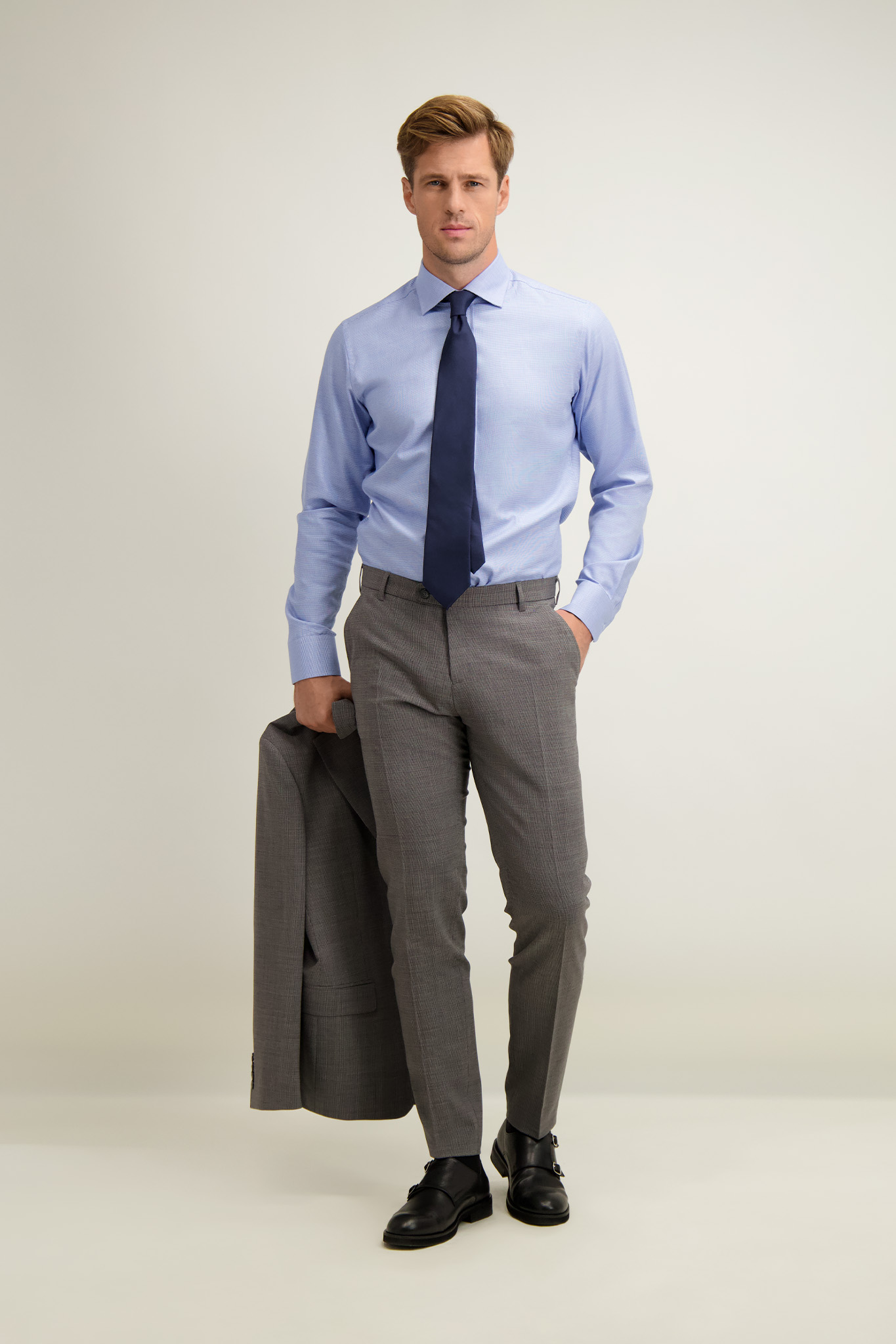 Model ma 187 cm wzrostu i prezentuje rozmiar 40.