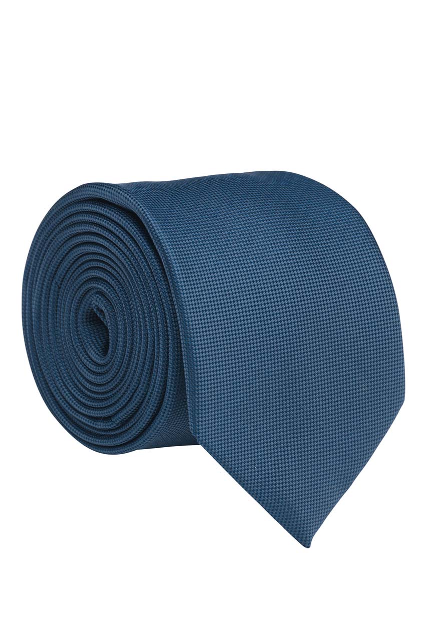 Niebieski krawat o drobnej strukturze która powoduje, że krawat nie jest zupełnie jednolity. Tworzy się unikatowy melanż kolorystyczny.