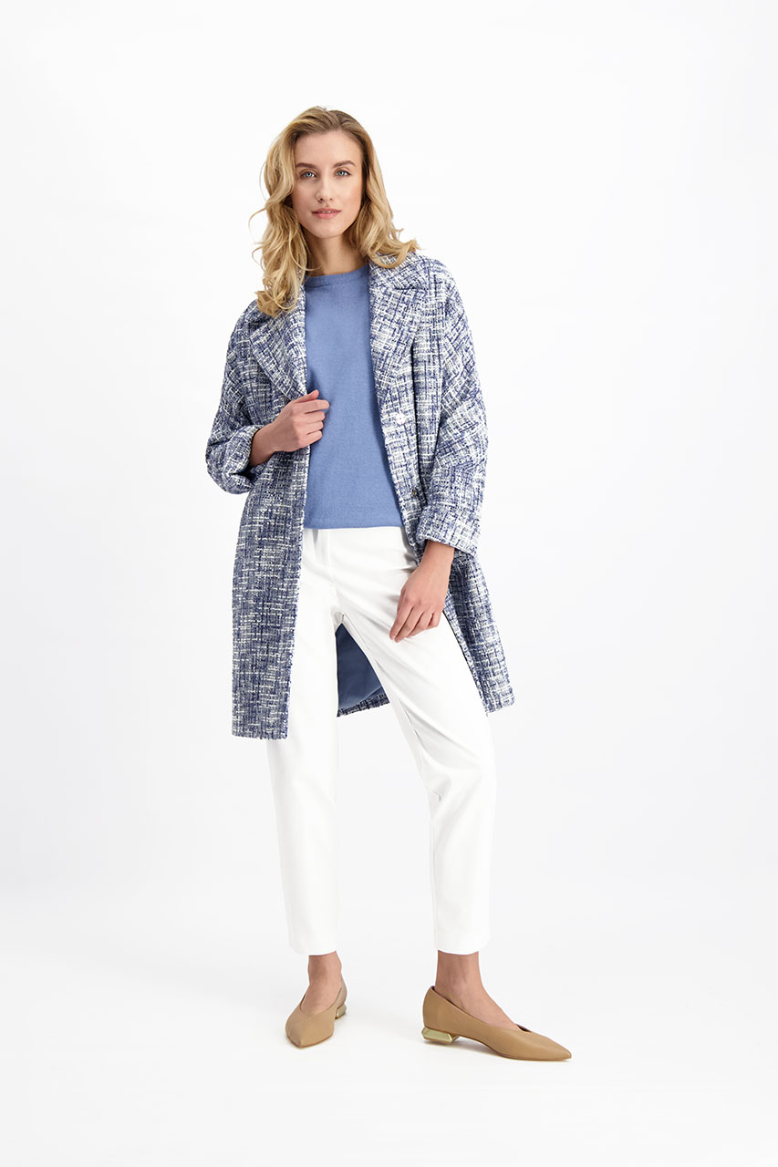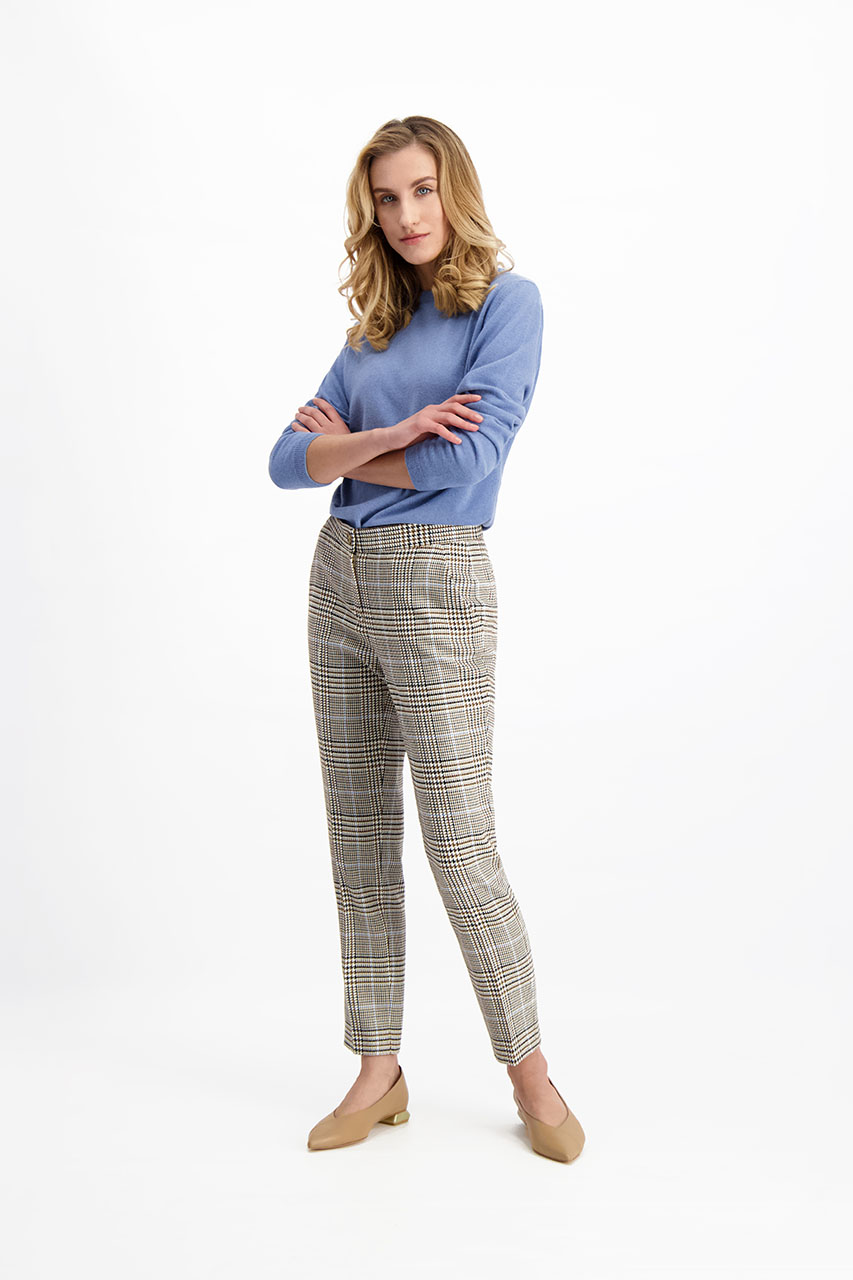 Sweter damski w pięknym niebieskim odcieniu. To model, który kolorystycznie doskonale prezentuje się z beżami, brązami i najmodniejszym w tym sezonie camelem. Sweter uszyty jest z fantastycznej mieszanki wełny, viskozy i domieszki kaszmiru. Niewielki dodatek włókna syntetycznego wpływa korzystnie na komfort użytkowania i zapewnia większą trwałość tkaniny. Zimą i jesienią to must have w szafie każdej kobiety. Sweter będzie doskonałą bazą do budowania stylizacji. Dopasowany krój pozwala na noszenie go nawet pod marynarką.