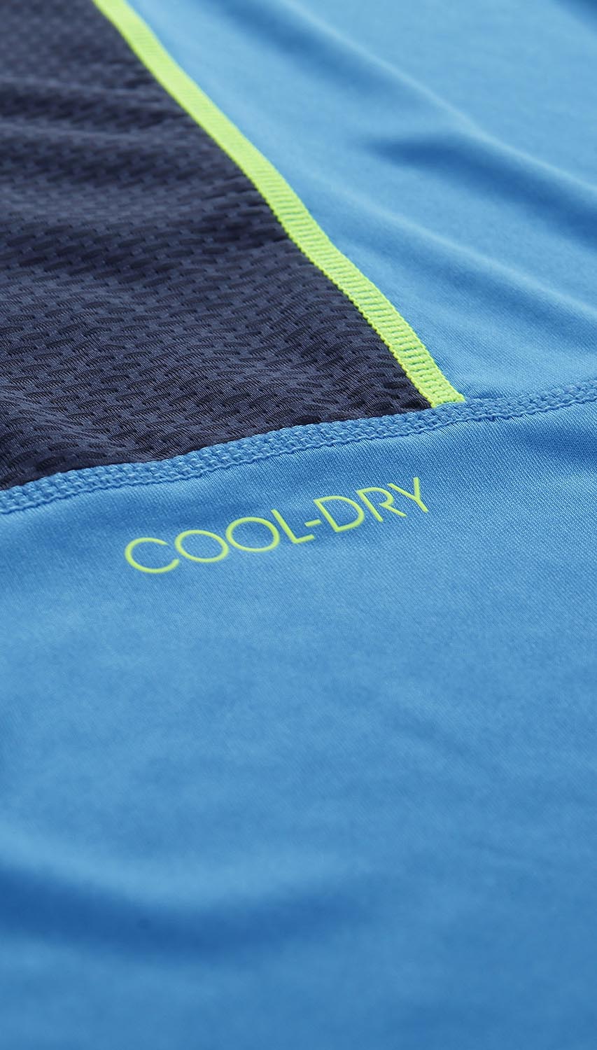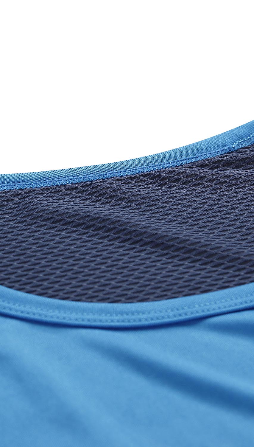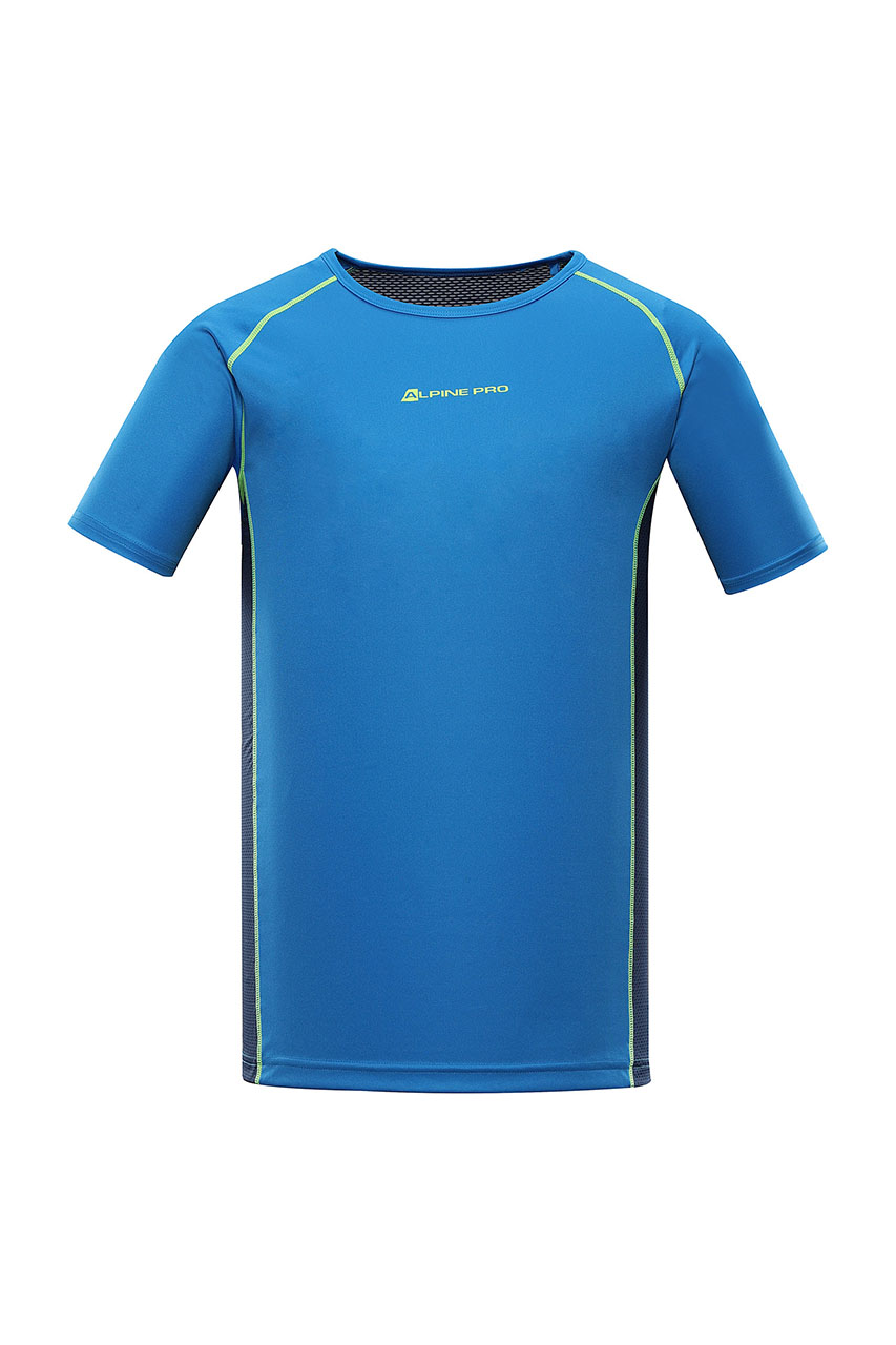 T-shirt męski w niebieski odcieniu. Wykonana została z oddychającej i szybkoschnącej tkaniny, która znakomicie odprowadza pot. Koszulka posiada okrągły dekolt oraz luźniejszy krój, dzięki czemu świetnie sprawdza się podczas aktywności fizycznej, ponieważ nie krępuje ruchów. Koszulka posiada elementy odblaskowe, dzięki czemu użytkownik jest widoczny w półmroku, ciemności czy w deszczu. Z uwagi na swoje właściwości koszulka doskonale sprawdzi się podczas fitnessu, przejażdżki rowerowej lub joggingu.