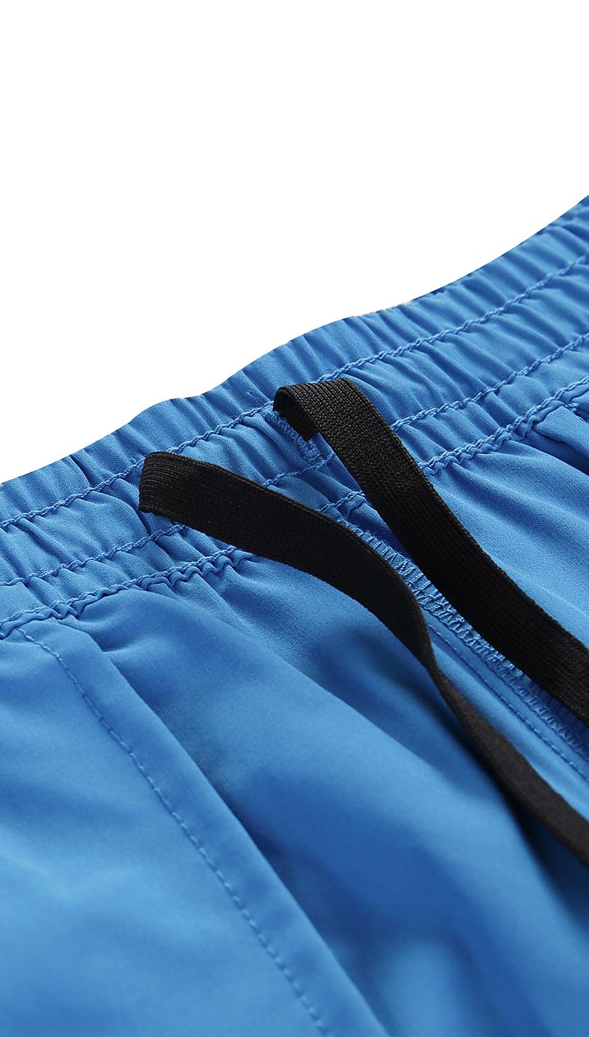 Niebieskie, krótkie spodenki męskie wykonane z elastycznej i szybkoschnącej tkaniny, która umożliwia doskonałe odprowadzanie potu na zewnątrz. Tradycyjny, nieco szerszy krój pozwala na pełny zakres ruchów oraz świetnie sprawdza się podczas aktywności fizycznej. Warto posiadać je w swojej szafie, ponieważ przydadzą się z pewnością na siłownię, spacer lub wyprawę górską latem.