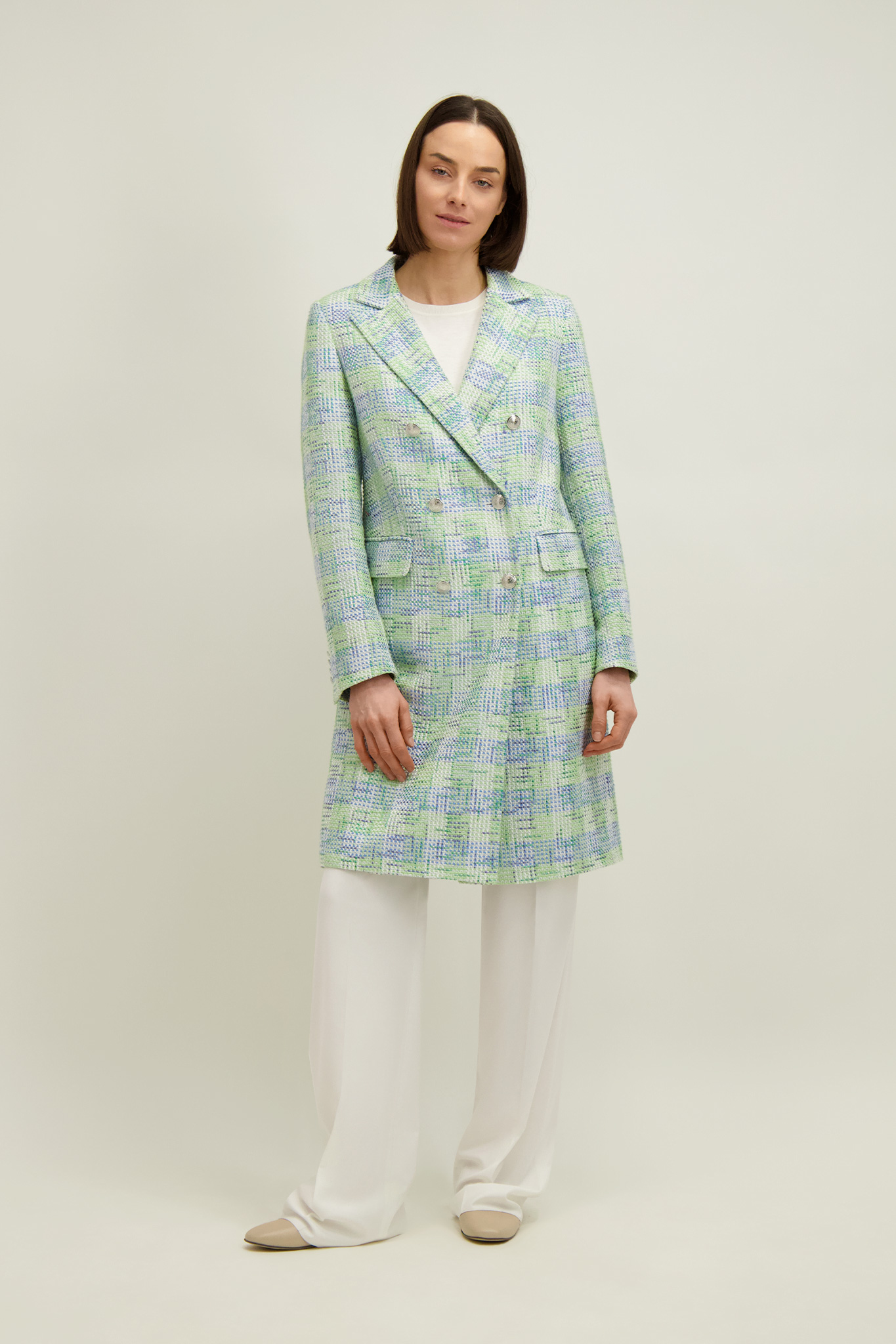 Niebiesko-zielony płaszcz damski z bawełną 87549