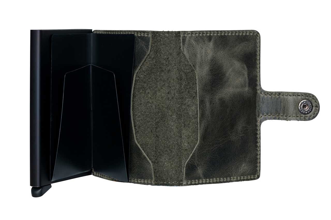 Portfel który łączy w sobie klasykę i nowoczesność. Wykonany z najwyższej jakości naturalnej skóry w stylu vintage, utrzymanej w oliwkowym odcieniu. Model który nabiera charakteru z biegiem użytkowania. Główną częścią portfela jest aluminiowy ochraniacz na karty Cardprotektor, który chroni przed złamaniem, zagięciem, a przede wszystkim przed zdalnym odczytaniem karty. Cardprotektor mieści od 1 do 6 kart. Portfel posiada system kliknięcia, dzięki któremu jednym szybkim ruchem można wysunąć karty. Dodatkowo wewnętrzna zakładka do noszenia banknotów, oraz praktyczne przegródki na wizytówki.Wymiary portfela to 10cmx7cm.