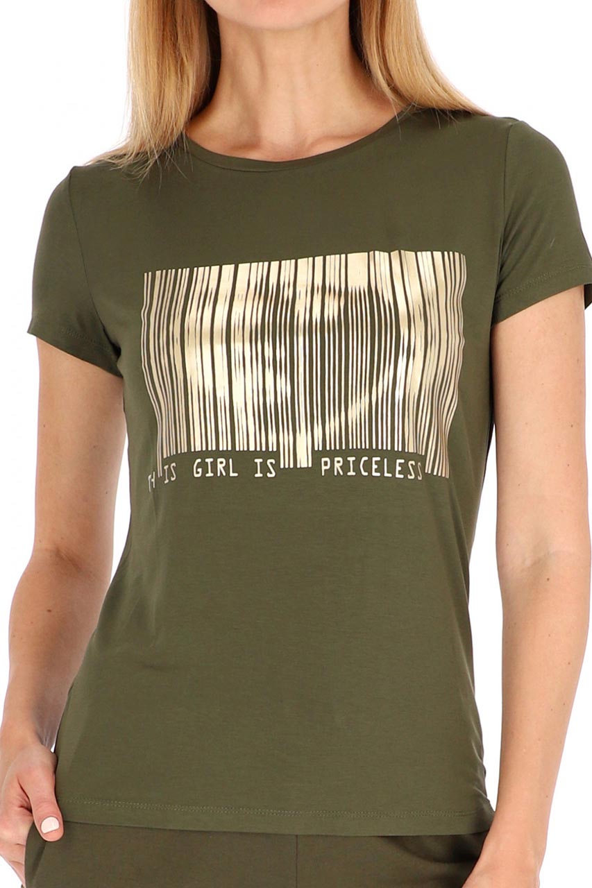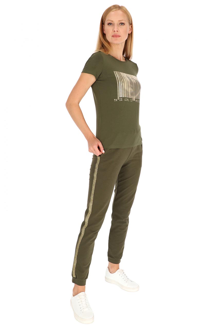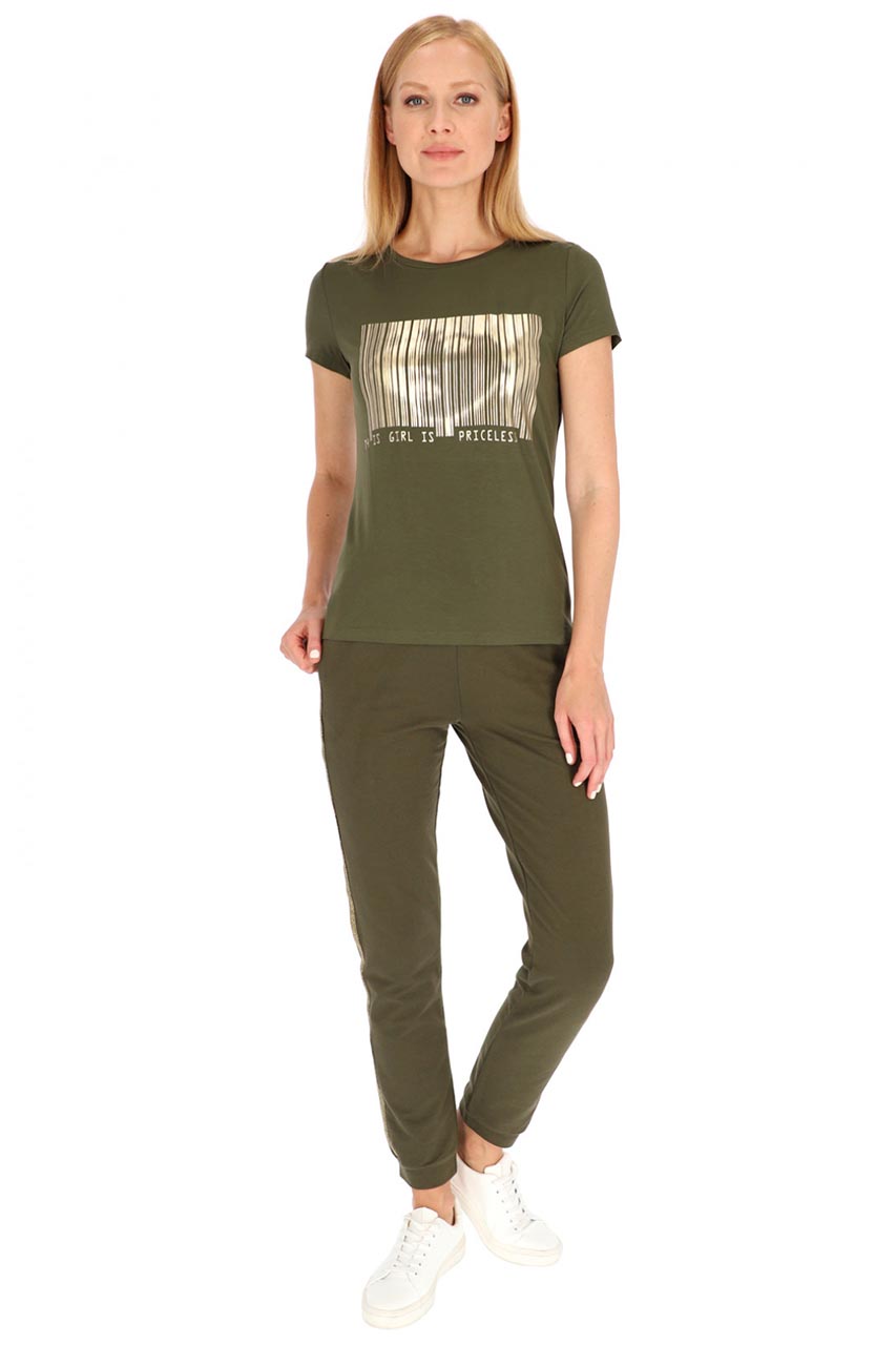 Oliwkowy t-shirt ze złotym nadrukiem 58503