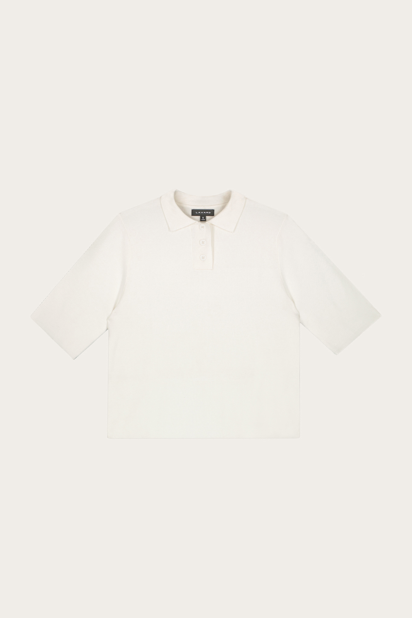 Polo damskie w kolorze ecru. Model o klasycznym fasonie z rękawem o długości 3/4.