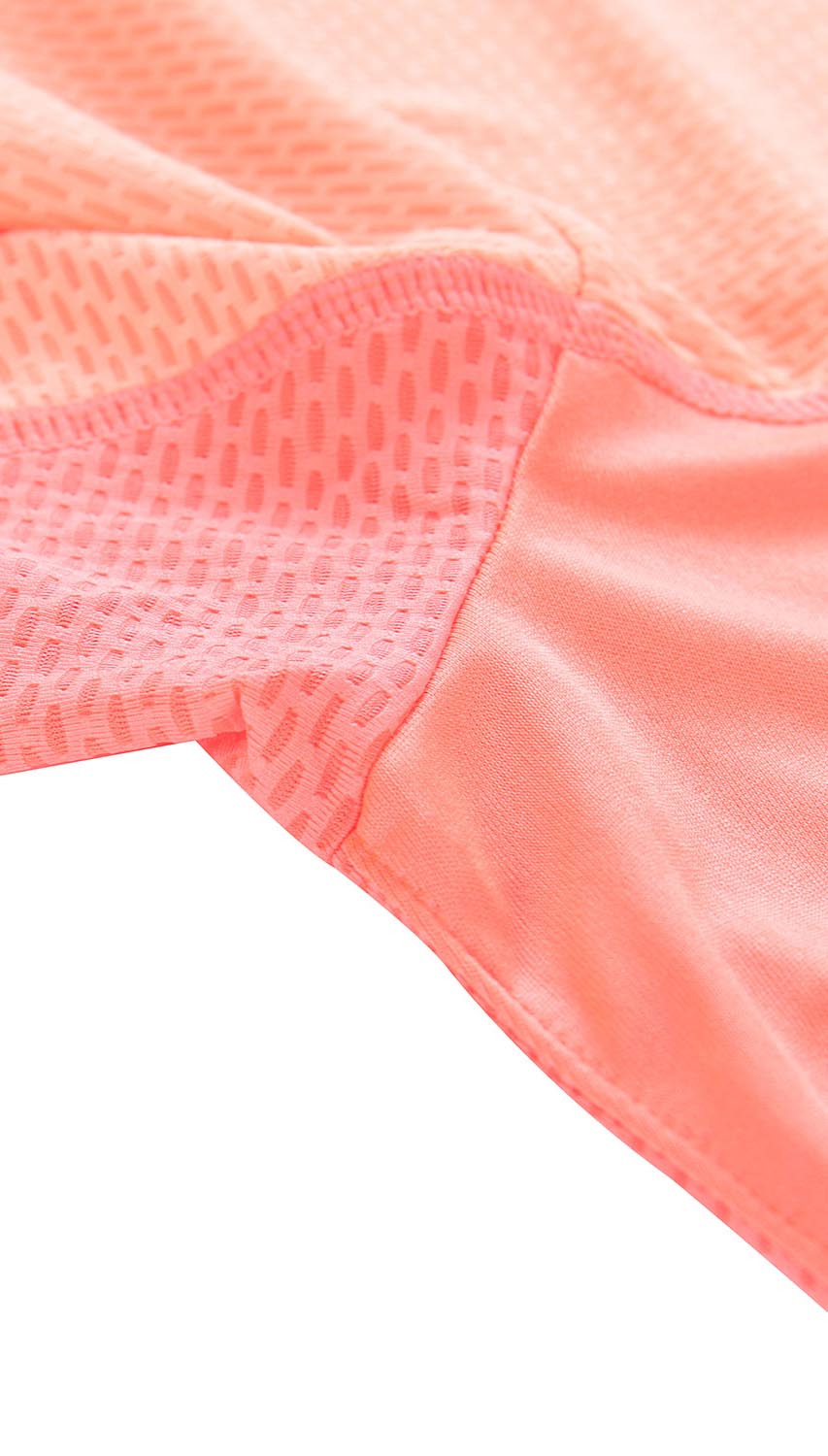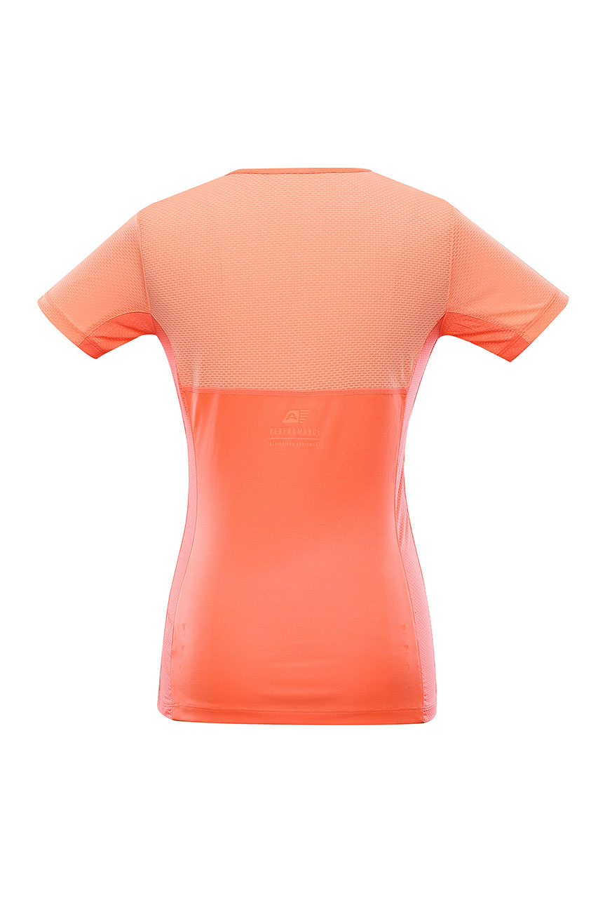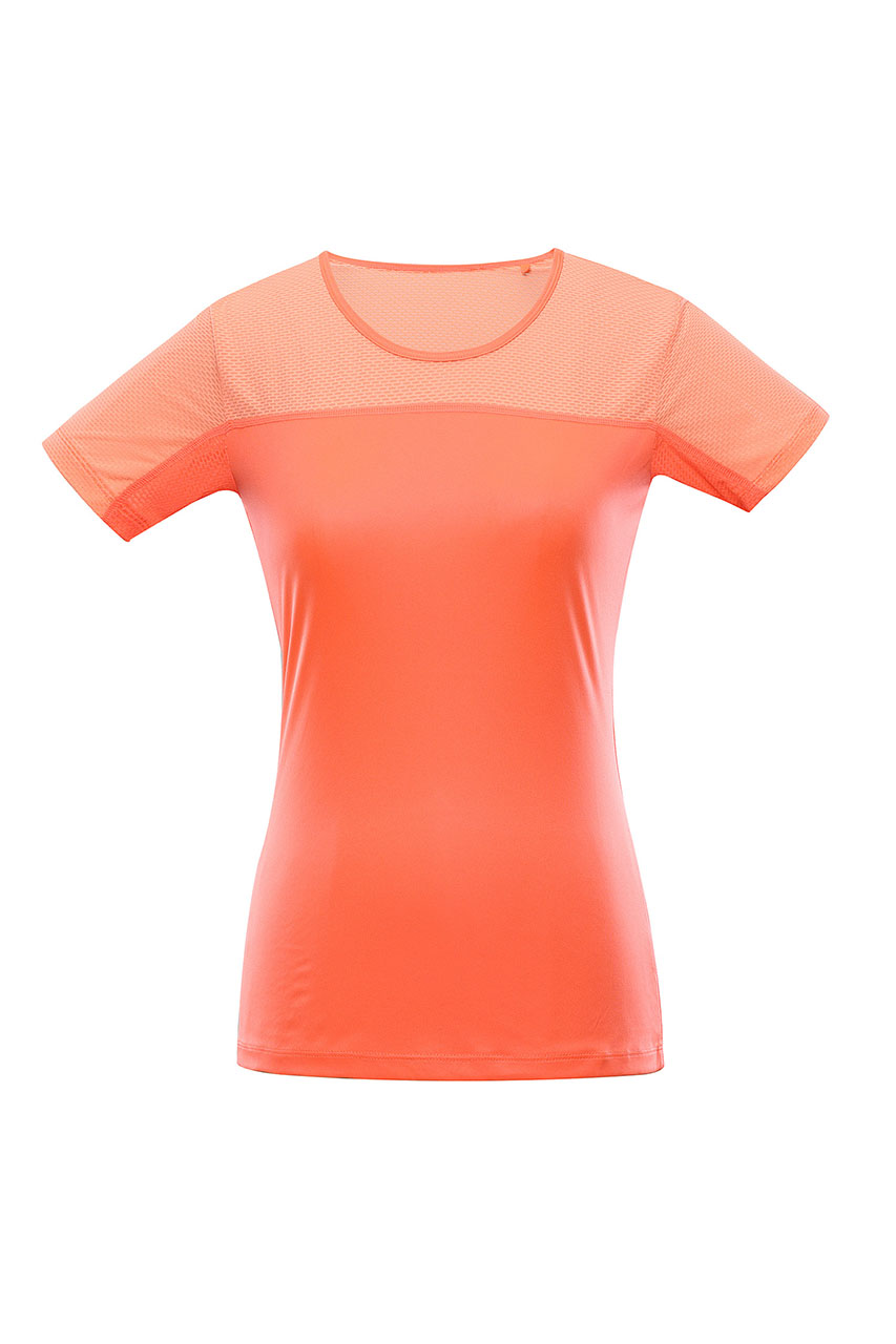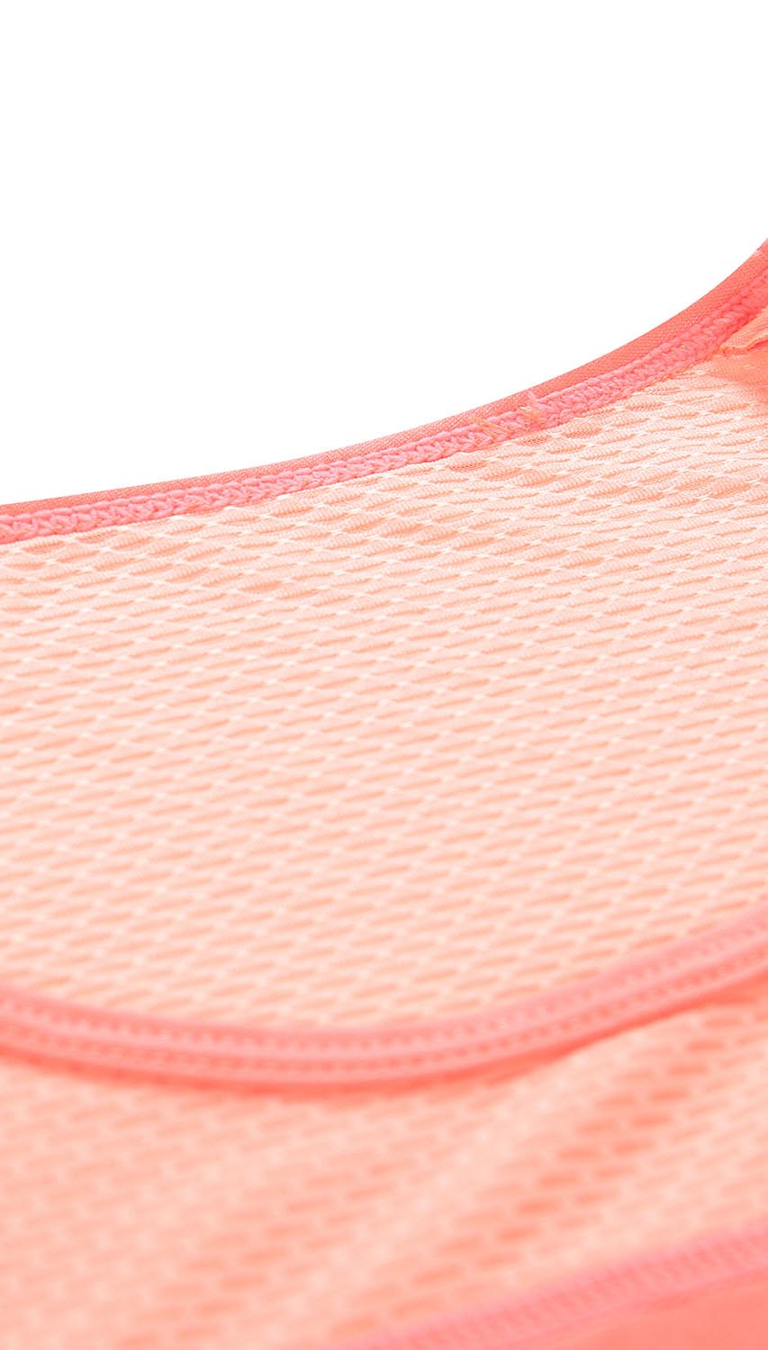 Pomarańczowa koszulka treningowa damska na grubych ramiączkach oraz z okrągłym dekoltem. Została uszyta w dopasowanym kroju z łączonych tkanin. Dzięki oddychającej i szybkoschnącej tkaninie o charakterystycznej strukturze, koszulka świetnie nadaje się do wszelkich aktywności fizycznych oraz treningu. Model posiada elementy odblaskowe, które podnoszą widoczność po zmroku lub w trudnych warunkach atmosferycznych, a kolor koszulki pozwala wyróżnić się, nawet podczas uprawiania sportu.