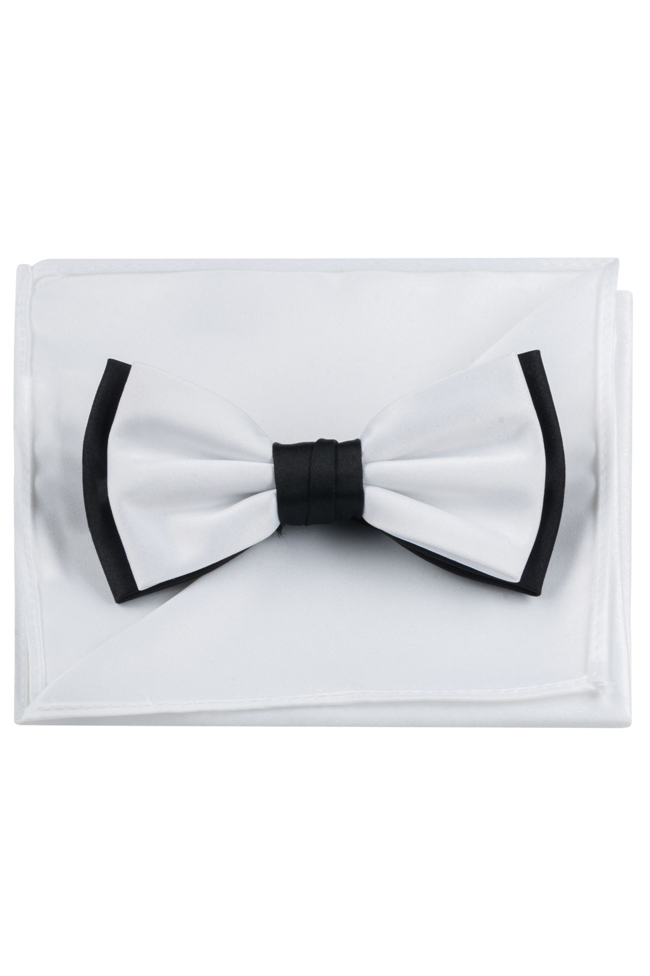Ponadczasowa biało-czarna mucha. Posiada wygodną regulację, umożliwiającą łatwe dopasowanie do pożądanego rozmiaru. W zestawie dołączona jest biała poszetka. Uniwersalny dodatek do każdej formalnej stylizacji, idealnie komponuje się ze smokingiem a także garniturem w kolorze czarnym i grafitowym.