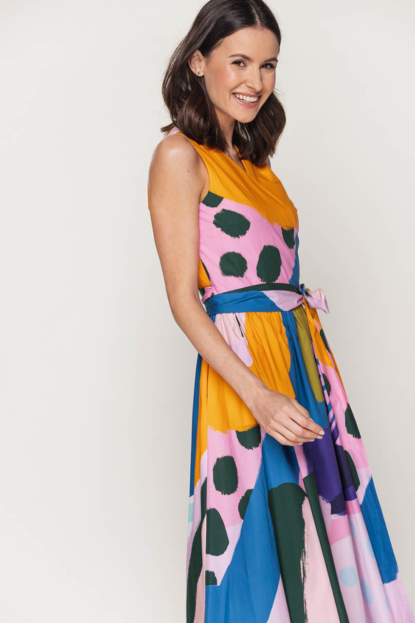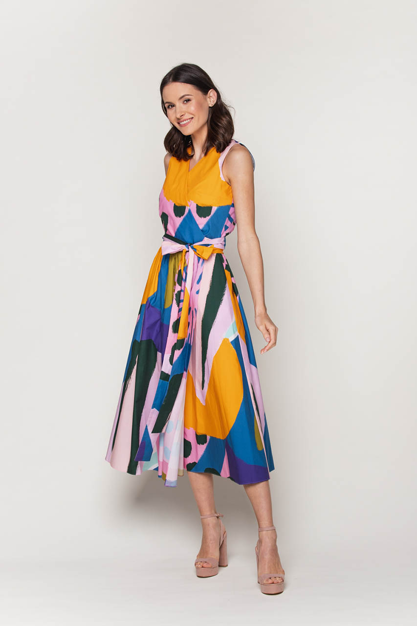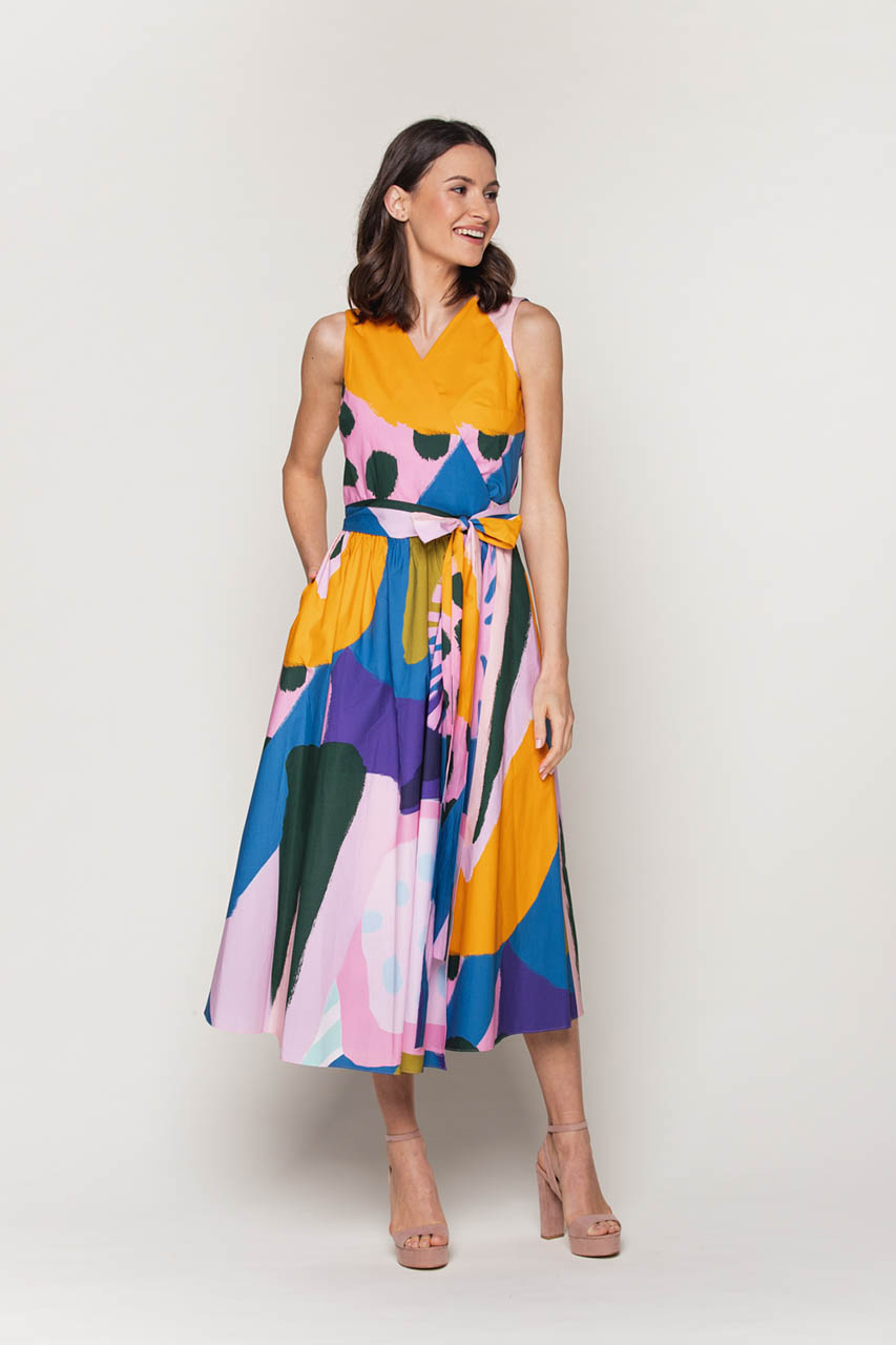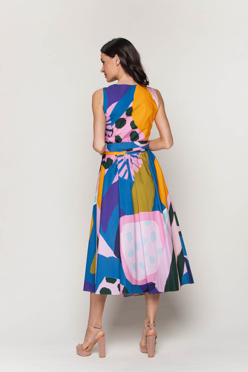 Sukienka jest propozycją dla kobiet, które chcą ożywić swoją garderobę. Model na podszewce, uszyty z bawełnianej tkaniny. Sukienka o kopertowym kroju to fason, który doskonale układa się na każdego typu sylwetce. Model z szarfą, która dodatkowo pięknie podkreśla talię. Sukienka świetnie odnajdzie się podczas mniej formalnych spotkań lub podczas uroczystości rodzinnych.