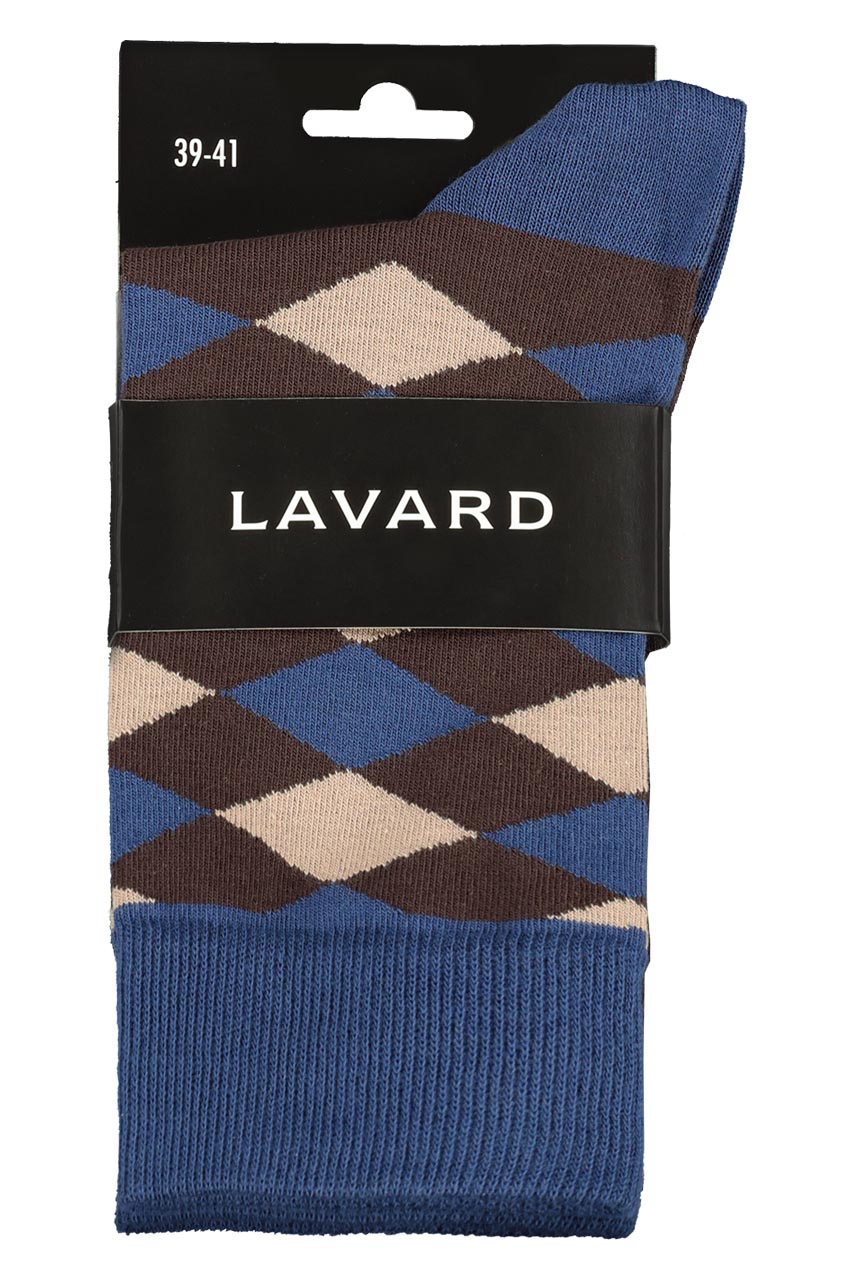 Skarpety męskie w romby utrzymane w ponadczasowej kolorystyce granatu, beżu i brązu. Model, który urozmaici nieco casualowe stylizacje. Doskonale sprawdzi się z brązowym obuwiem.
