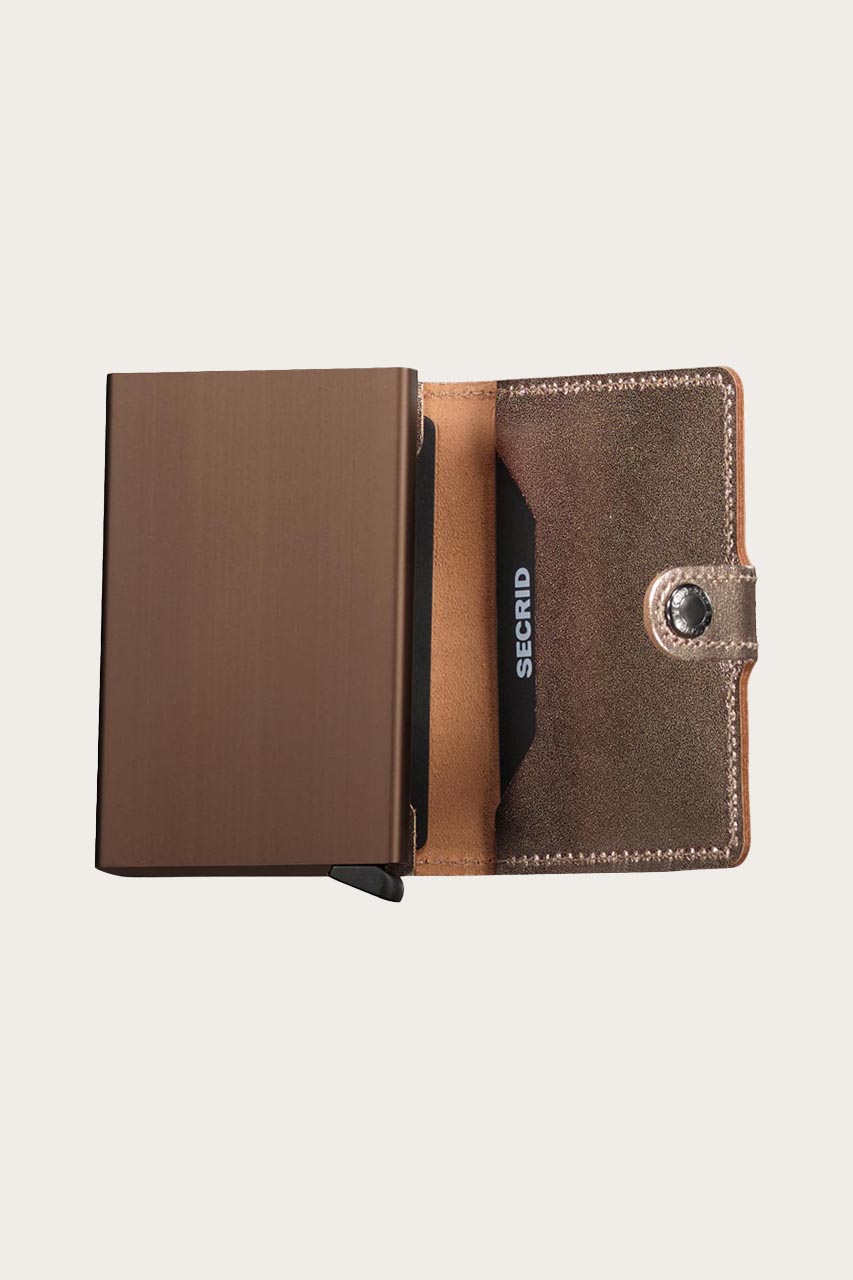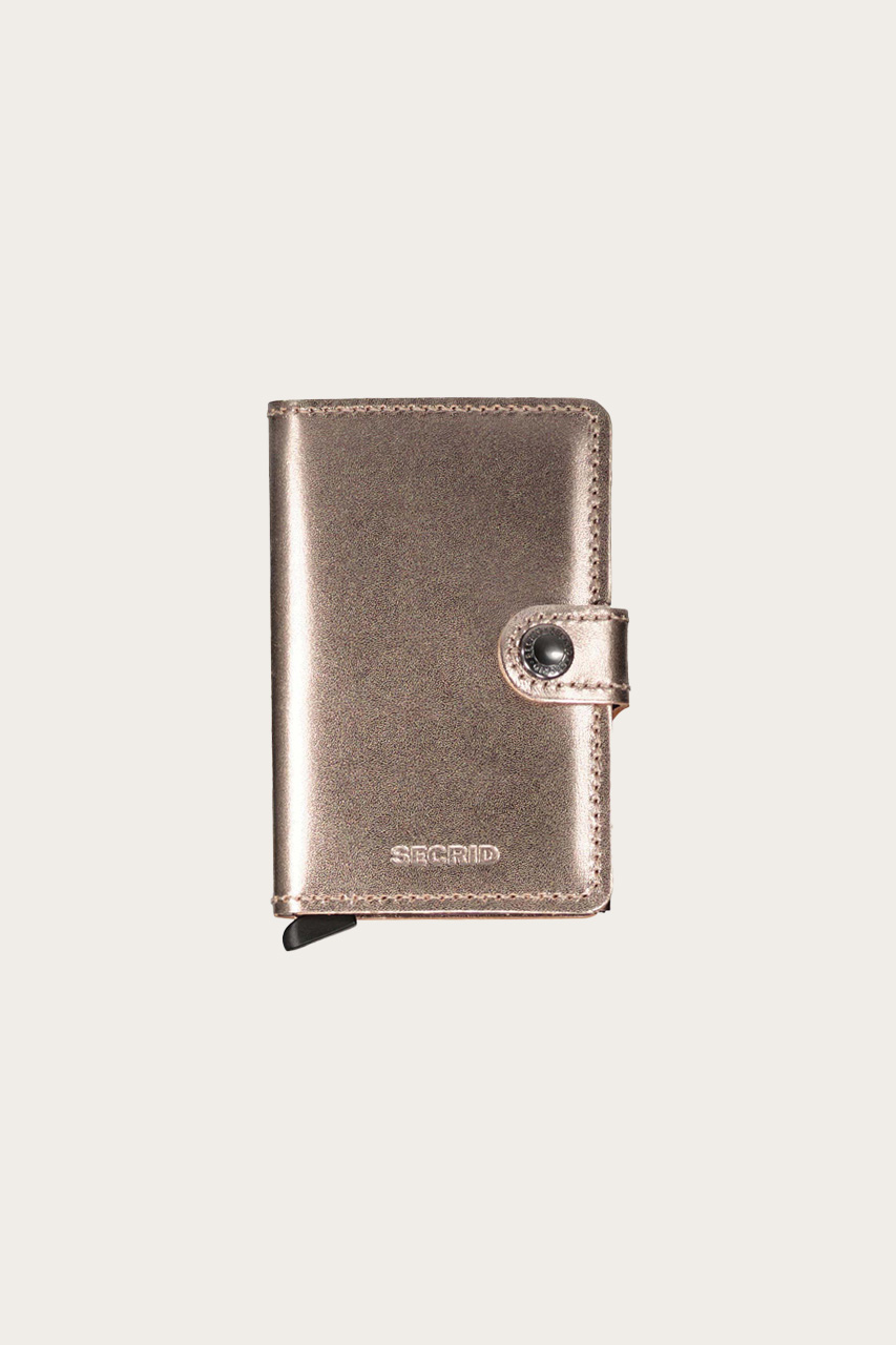 Portfel wykonany z najwyższej jakości naturalnej skóry utrzymanej w pięknym złotym odcieniu. Główną częścią portfela jest aluminiowy ochraniacz na karty Cardprotector, który chroni przed złamaniem, zagięciem, a przede wszystkim przed zdalnym odczytaniem karty. Cardprotector mieści od 1 do 6 kart. Portfel posiada system kliknięcia, dzięki któremu jednym szybkim ruchem można wysunąć karty. Dodatkowo wewnętrzna zakładka do noszenia banknotów, oraz praktyczne przegródki na wizytówki.