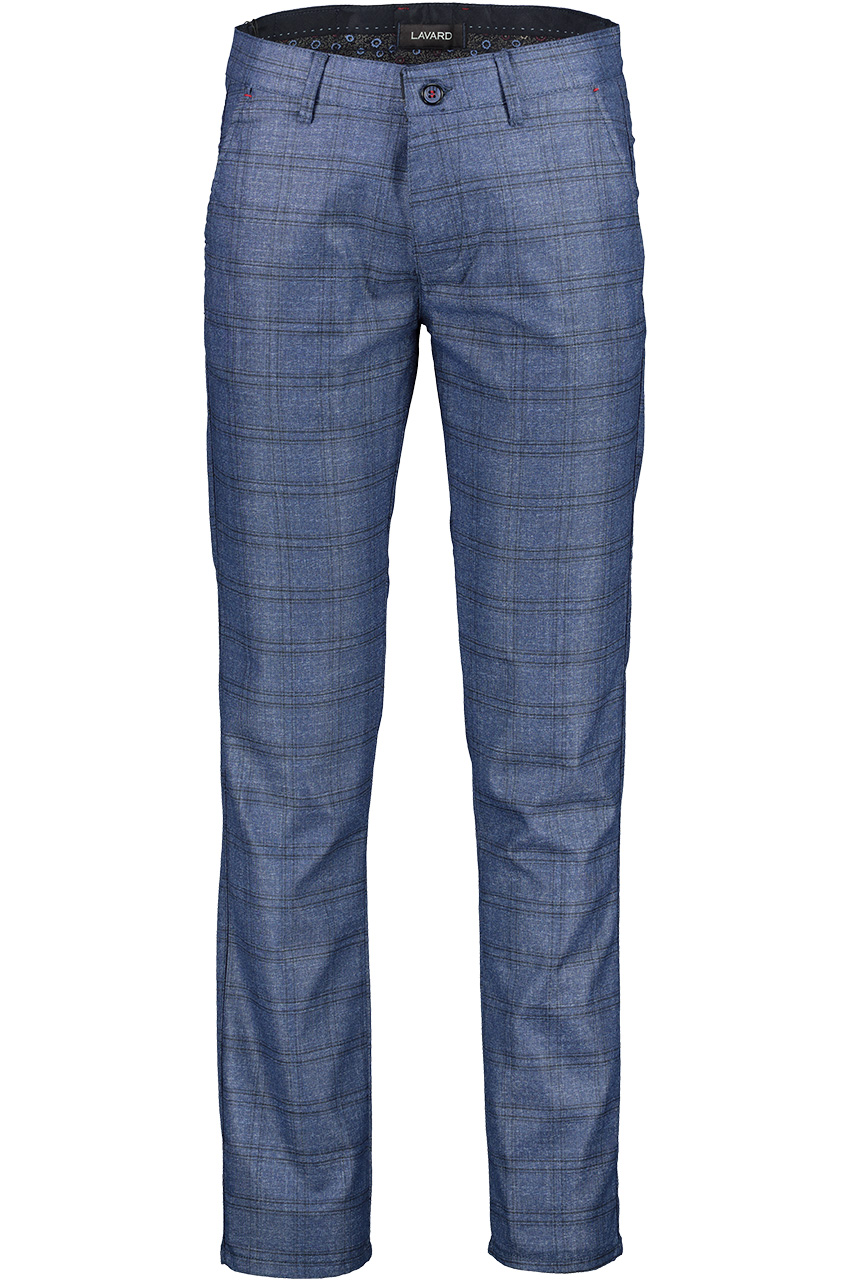 Granatowe spodnie męskie w kratę Chinos London 64520