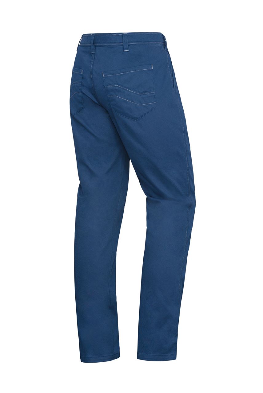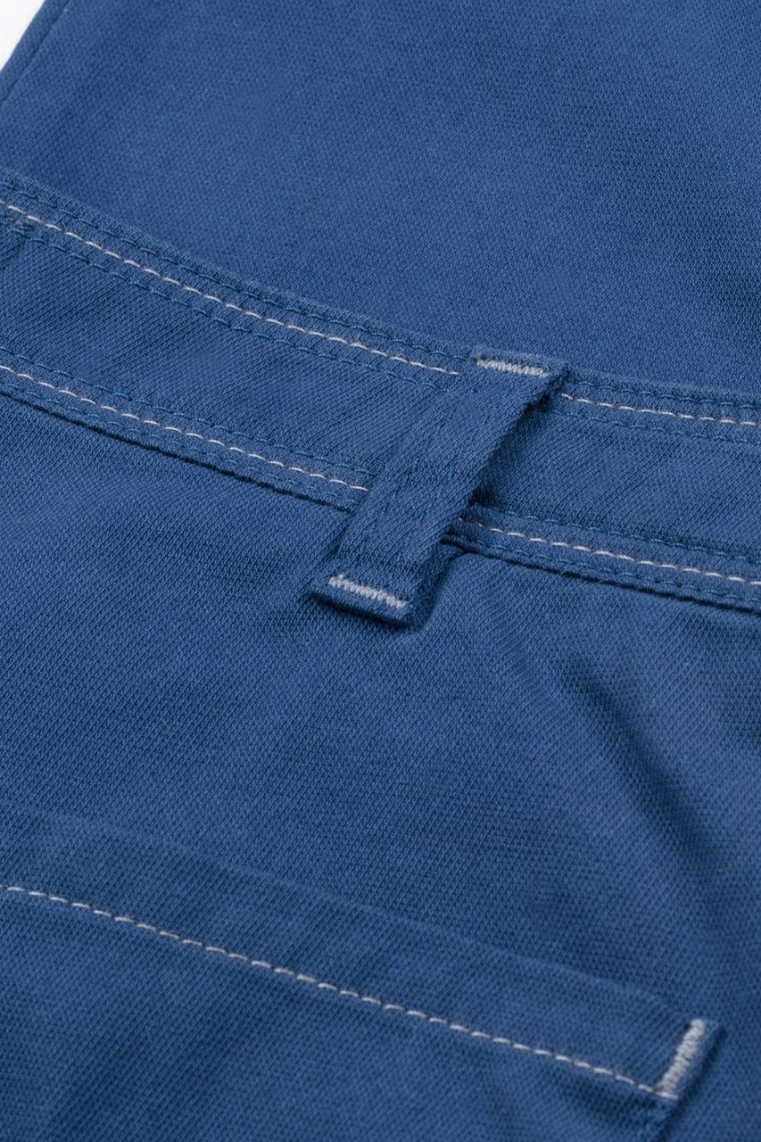 Granatowe spodnie, wykonane z bawełnianej tkaniny o delikatnej strukturze. Model z pięcioma praktycznymi kieszeniami: z przodu dwie cięte i biletówka, z tyłu dwie kieszenie naszywane. Spodnie o kroju slim z wąskimi nogawkami. Posiadają kontrastowe szare przeszycia, dodające sportowego charakteru. Model zapinany na guzik i zamek. Dodatek elastycznego włókna korzystnie wpłynie na komfort użytkowania. Sprawdzą się w miejskich stylizacjach z casualową kurtką i kardiganem.