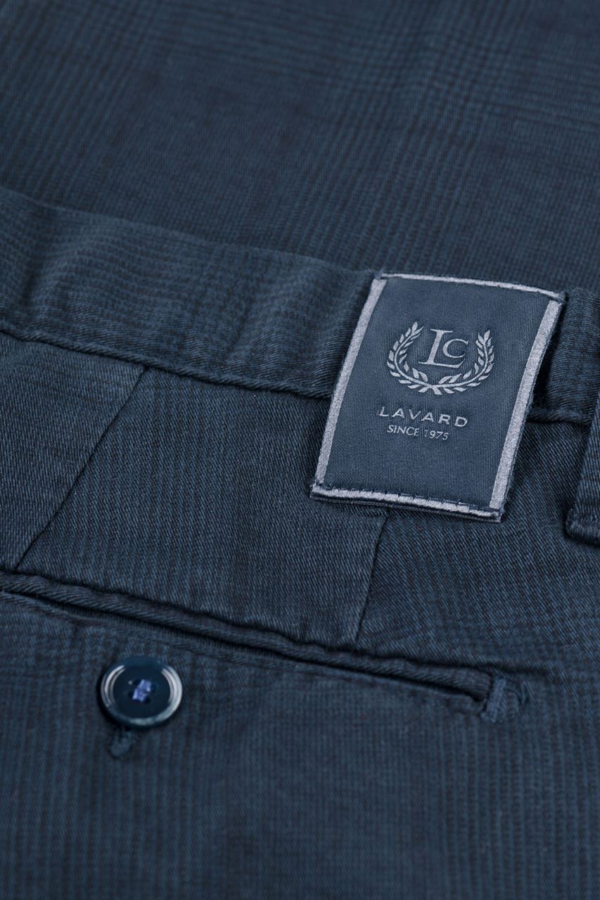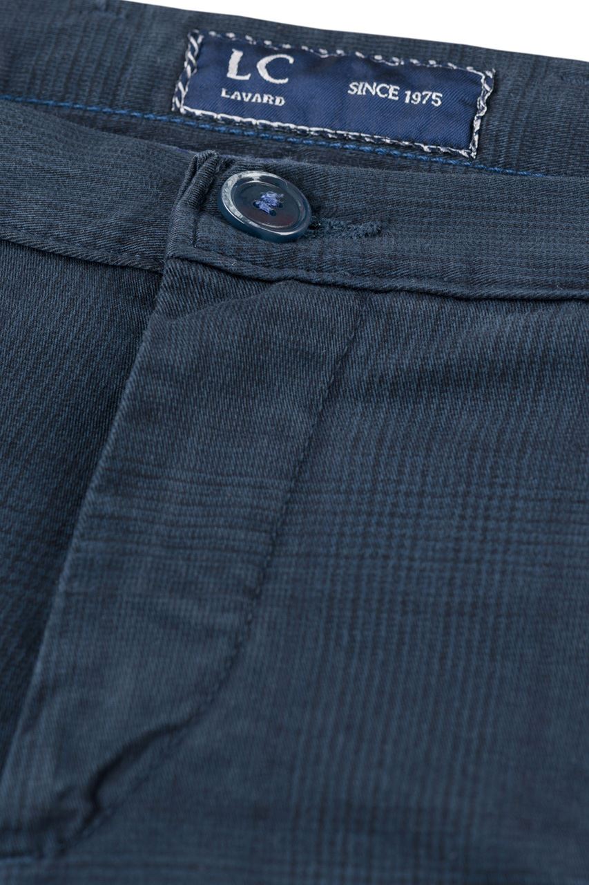 Granatowe spodnie w ponadczasową kratę, uszyte z przyjemnej w dotyku, bawełnianej tkaniny. Model posiada cztery kieszenie: dwie skośne z przodu oraz dwie wpuszczane z tyłu, zapinane na guziki. Spodnie o kroju slim z modną, wąską nogawką. Dodatek elastycznych włókien korzystnie wpływa na komfort i jakość użytkowania. W pasie klasyczne szlufki. Model zapinany na zamek i guzik w zbliżonym odcieniu. Doskonale sprawdzi się w zestawie z casualową marynarką i gładką koszulą.