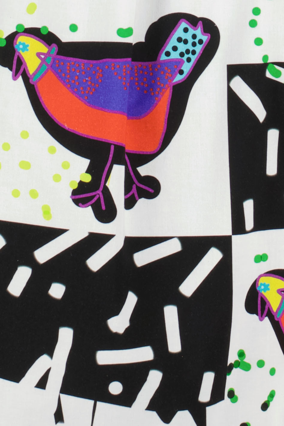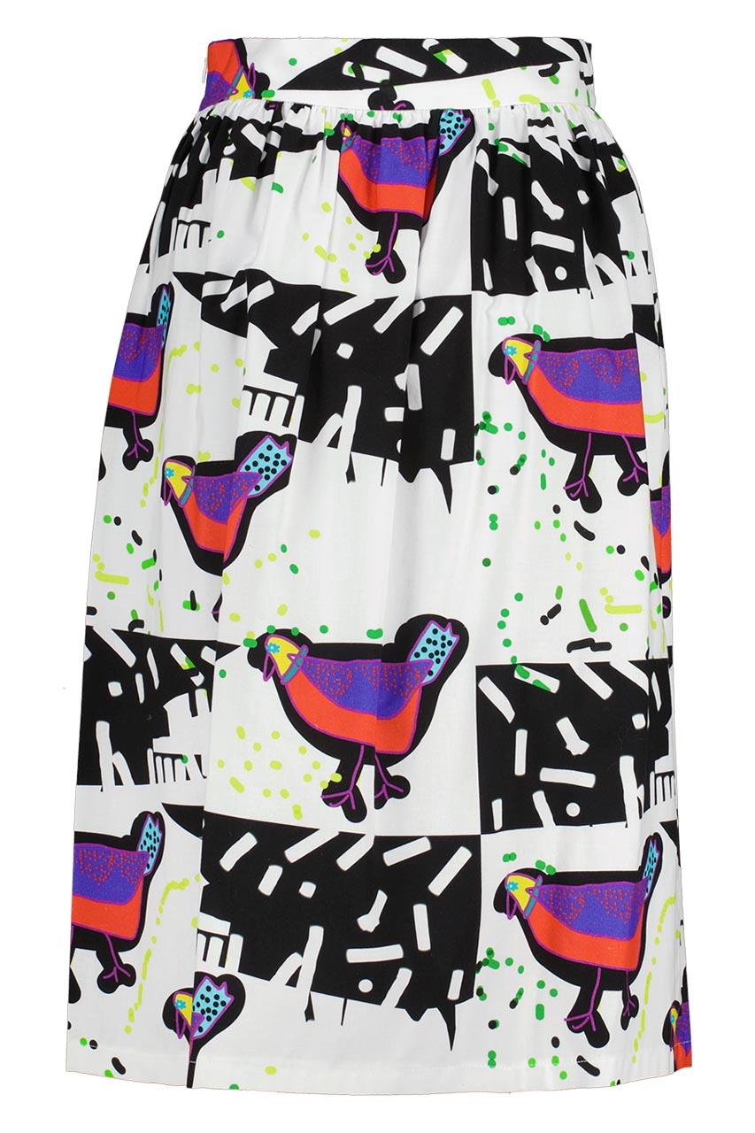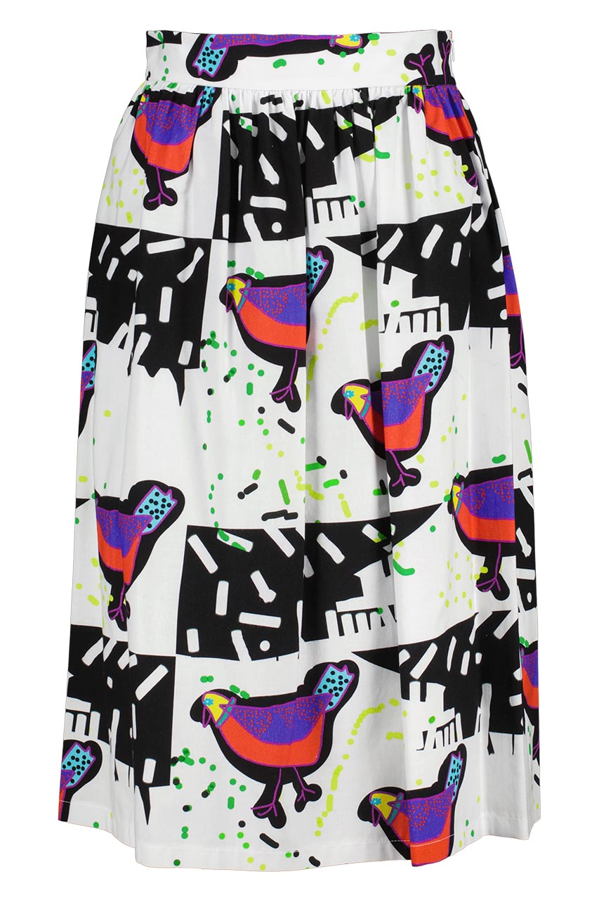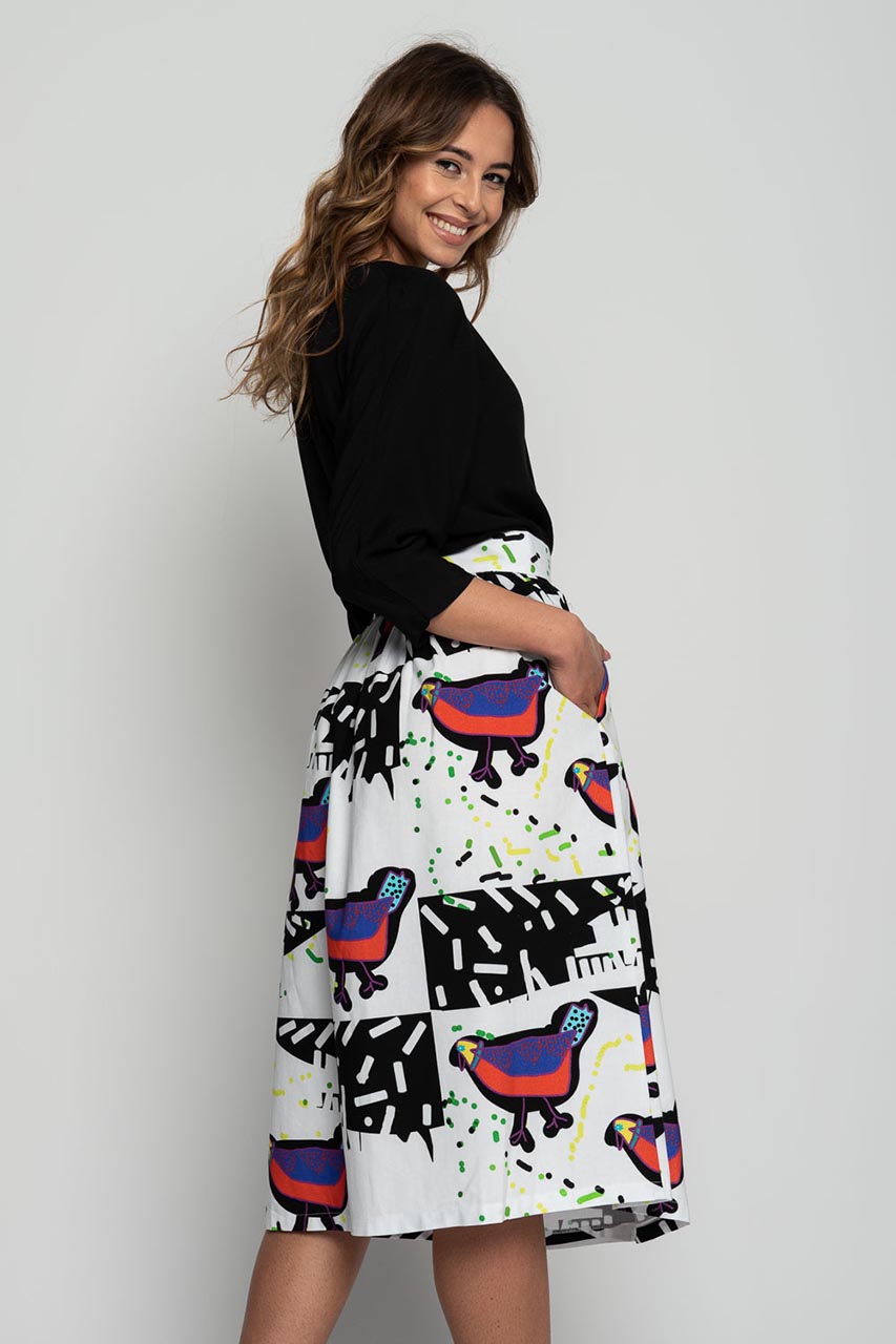 Spódnica o średniej długości z efektownym marszczeniem w talii oraz szerokim pasem. To bawełniany model, który nie posiada podszewki, dlatego świetnie sprawdzi się zwłaszcza latem. Jeśli chodzi o deseń oraz kolorystykę, to proponowana spódnica od pierwszego spojrzenia zachwyca swoją oryginalnością. Tkaninę zdobią żywe barwy oraz niesztampowe nadruki, które zachwycą każdą wielbicielkę niebanalnych rozwiązań. Spódnicę można nosić zarówno w stylizacjach casualowych z t-shirtem oraz trampkami, a także w stylu smart casualowym z szykowną koszulą oraz czółenkami na obcasie. W każdej sytuacji sprawdzi się znakomicie i na pewno przyciągnie niejedno spojrzenie!