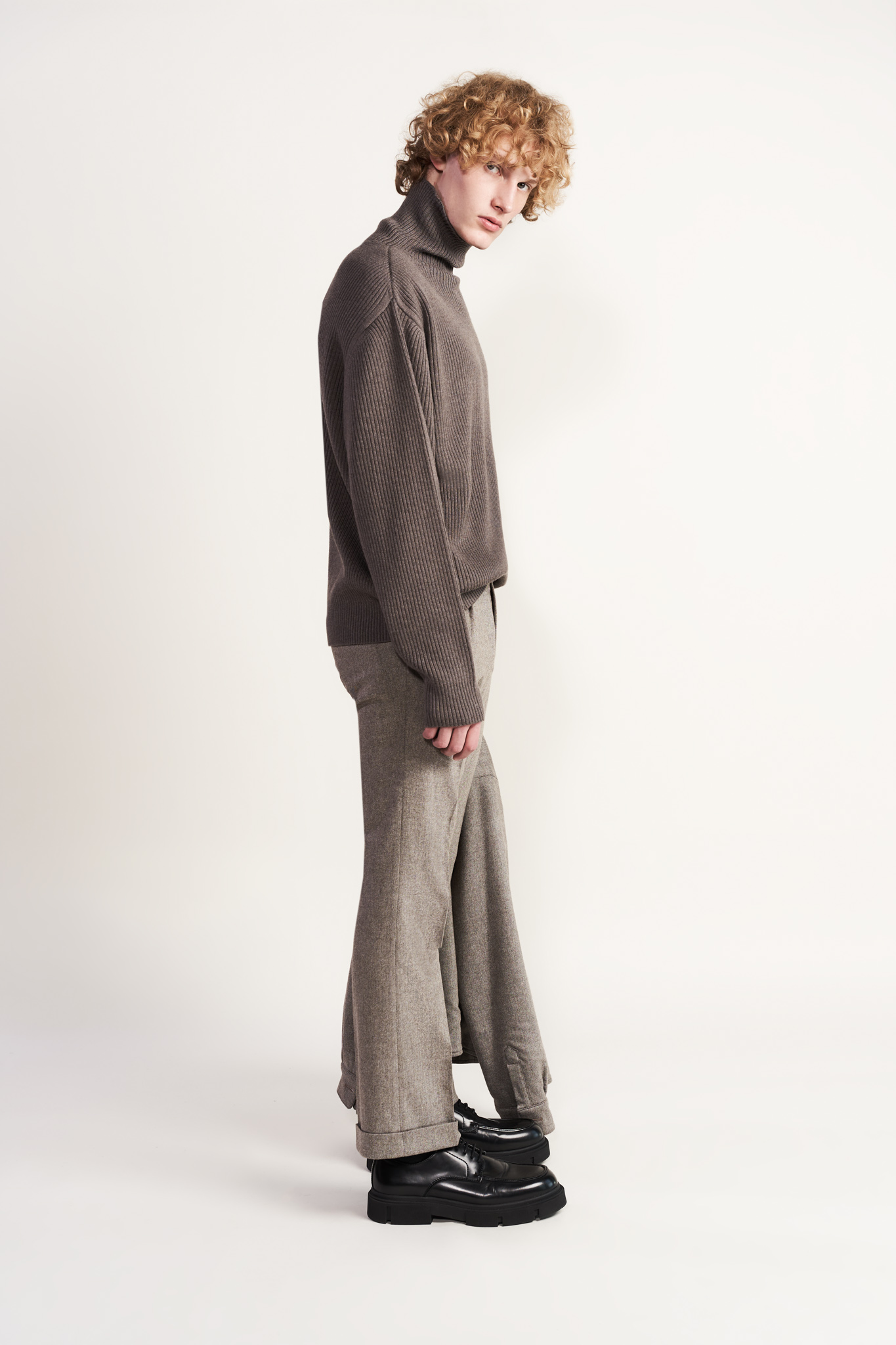 Spodnie z miękkiej beżowej bawełny z mankietem. Nogawka spodni 19 cm . Spodnie uszyte z tkaniny pochodzącej z włoskiej tkalni Profilo. Można je łączyć w monochromatyczny zestaw z overshirtem z tej samej tkaniny (29971)