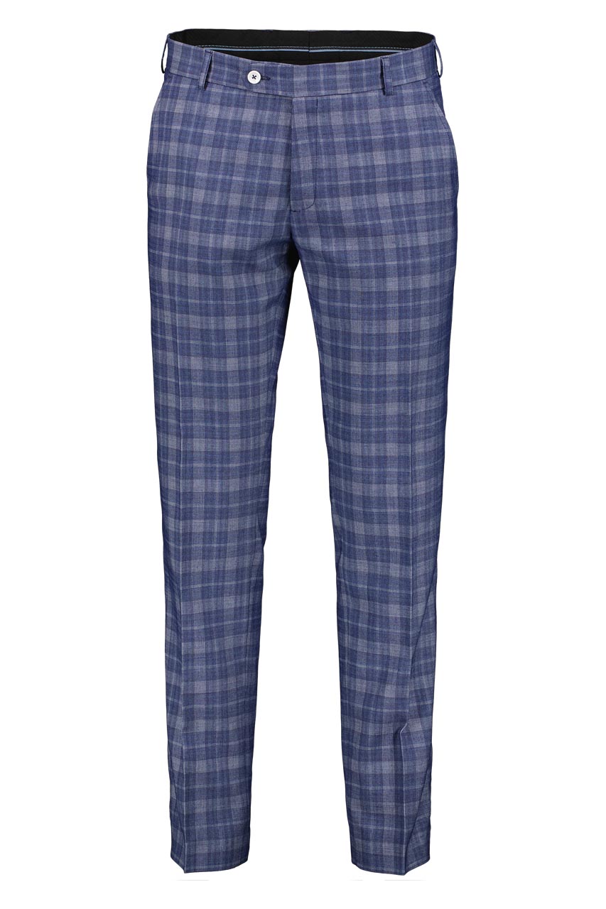 Spodnie męskie w kratę utrzymane w pięknej kolorystyce granatu, niebieskiego i jasnego grafitu. Świetne połączenie kolorystyczne, lekka tkanina i dopasowany krój tworzą z nich fantastyczną propozycję dla mężczyzn szukających stylowych rozwiązań, które doskonale odnajdą się zarówno w casualowej jak i eleganckiej stylizacji. Spodnie świetnie prezentują się w luźnych zestawieniach z lekkim swetrem jak i w zestawie z marynarką i kamizelka z tej samej tkaniny tworzących elegancki garnitur męski.