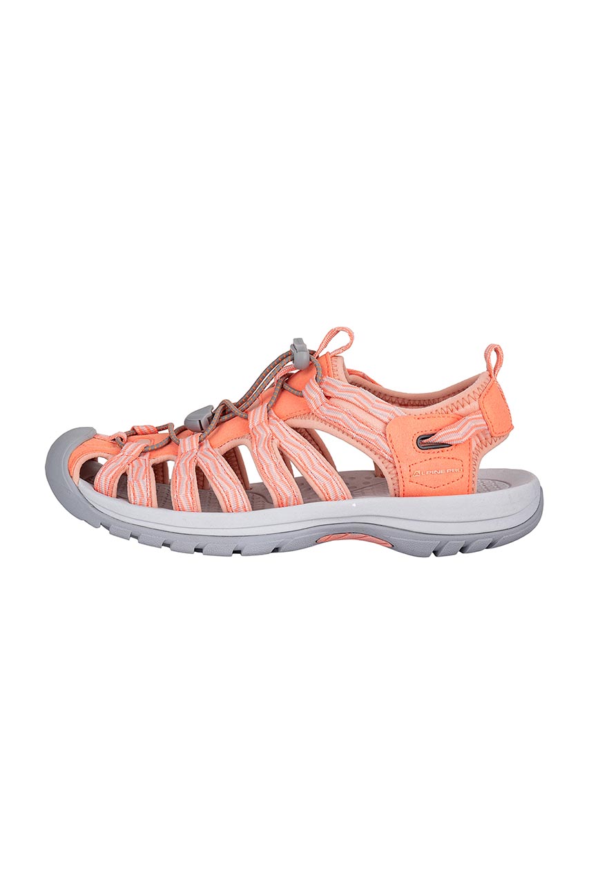 Lekkie sandały sportowe w łososiowym i jasnoszarym odcieniu. Buty z wytrzymałą gumową podeszwą. Zostały wykonane z syntetycznej tkaniny z otworami zapewniającymi wentylację. Jest to model przeznaczony na długie spacery oraz letnie wędrówki górskie. Solidna, antypoślizgowa i odporna na ścieranie podeszwa zapewnia komfort użytkowania nawet po kilku godzinach marszu, a otwory pozwalają oddychać skórze.