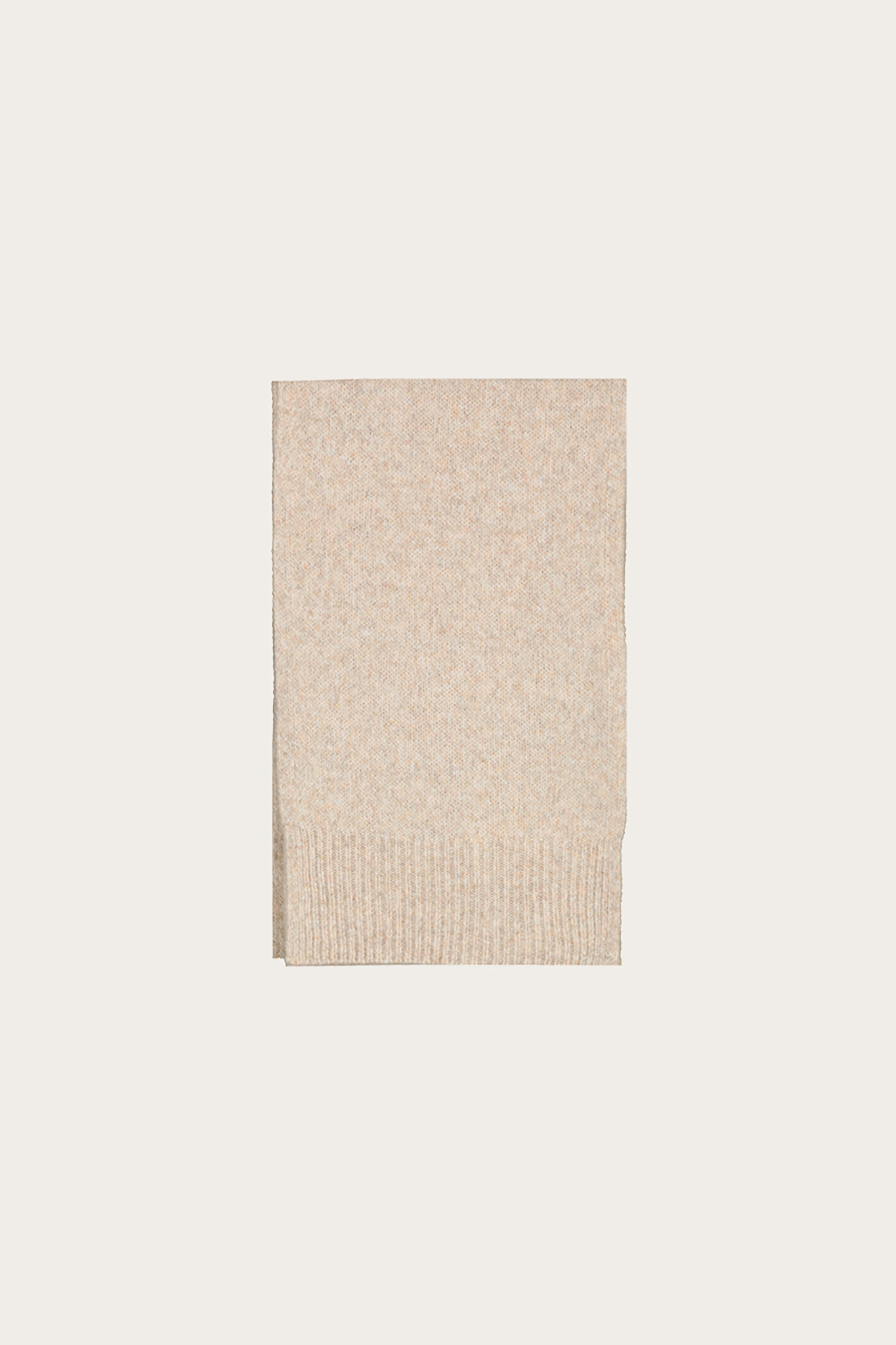 Beżowy szal damski. Model o drobnym splocie z dodatkiem wełny.