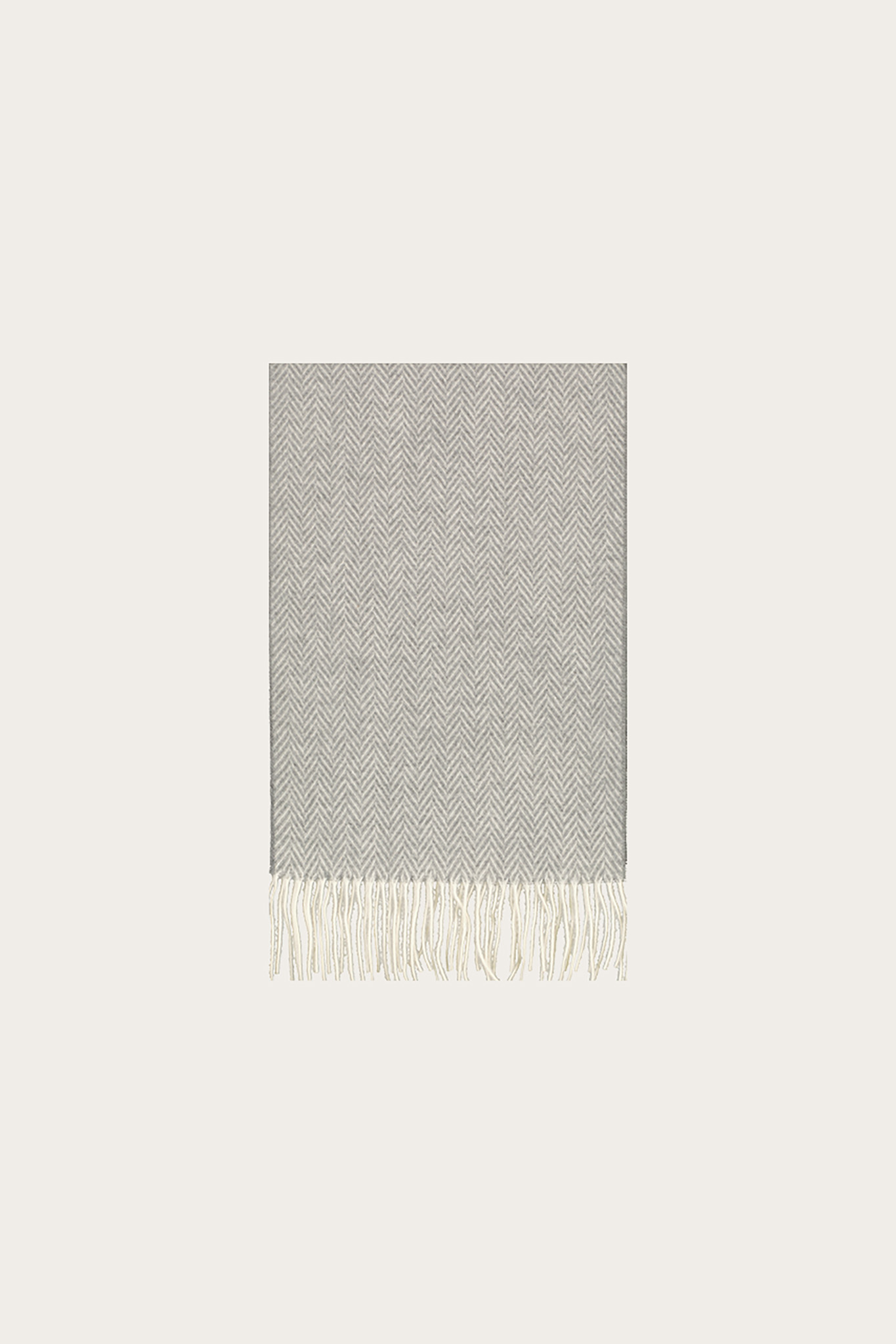 Szary szal damski w jodełkę. Model o drobnym splocie zakończony frędzlami.