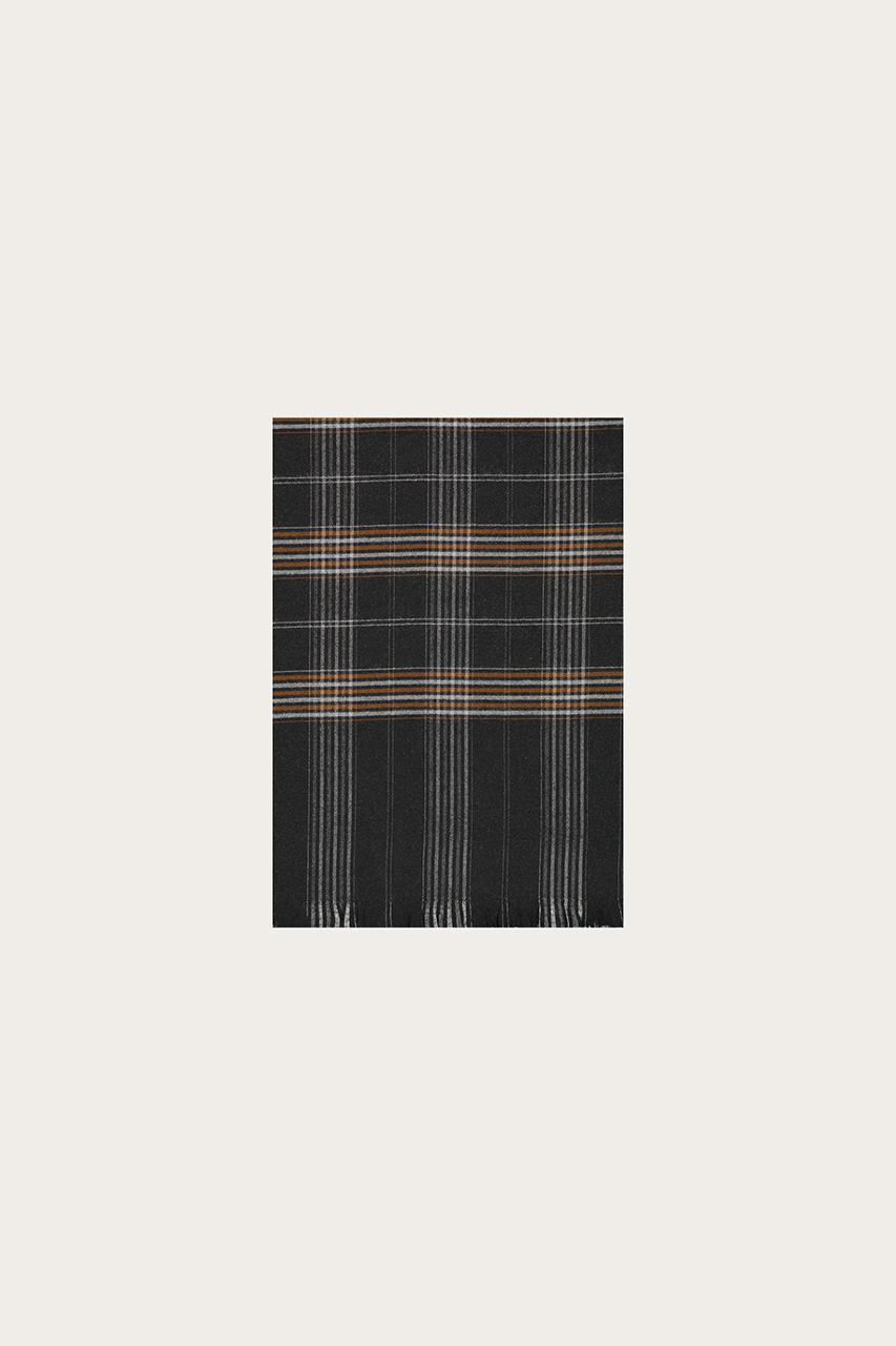 Szal w kratę, uszyty z przyjemnej i miękkiej w dotyku tkaniny.