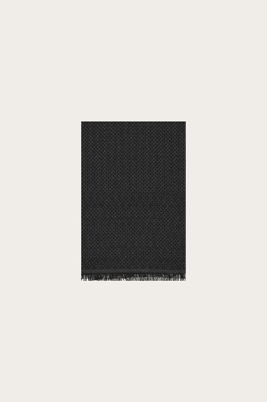 Grafitowy szal w mikro wzór, uszyty z przyjemnej i miękkiej w dotyku tkaniny.