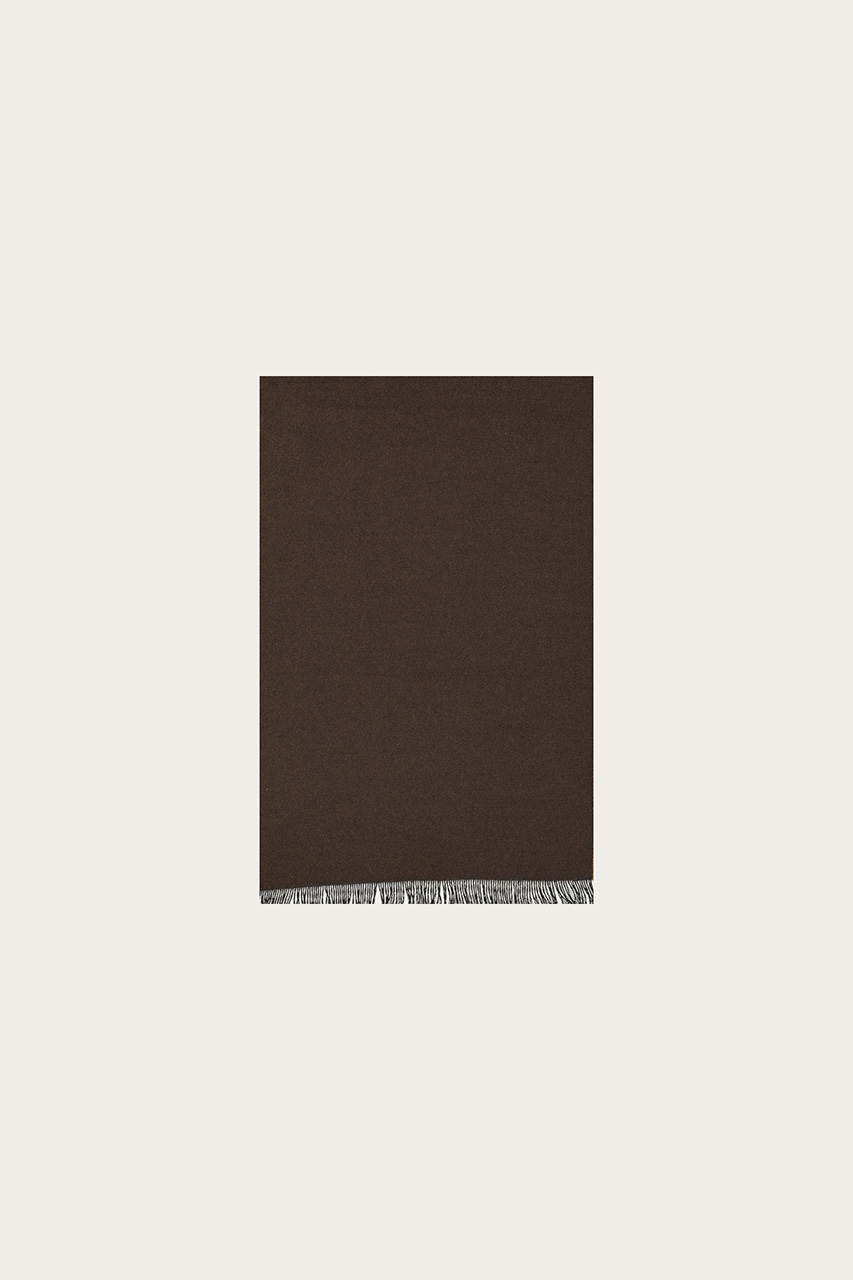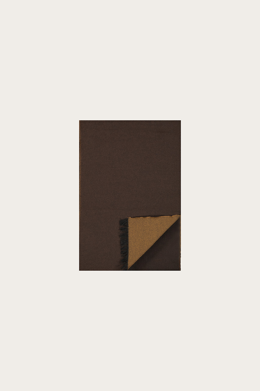 Szal dwustronny, utrzymany w odcieniu brązu i camelu. Uszyty z miękkiej i przyjemnej w dotyku tkaniny.