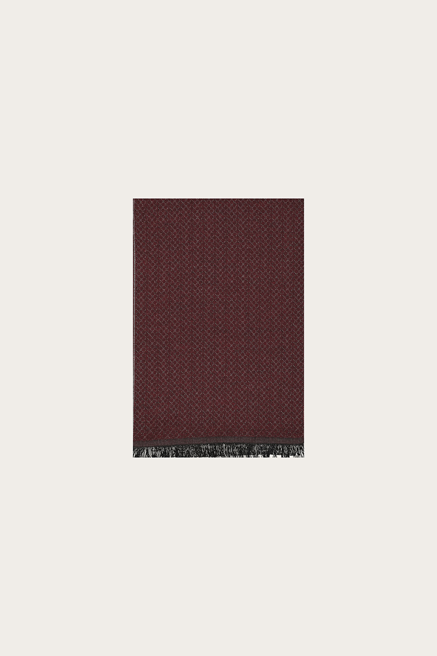 Bordowy szal w mikro wzór, uszyty z przyjemnej i miękkiej w dotyku tkaniny.