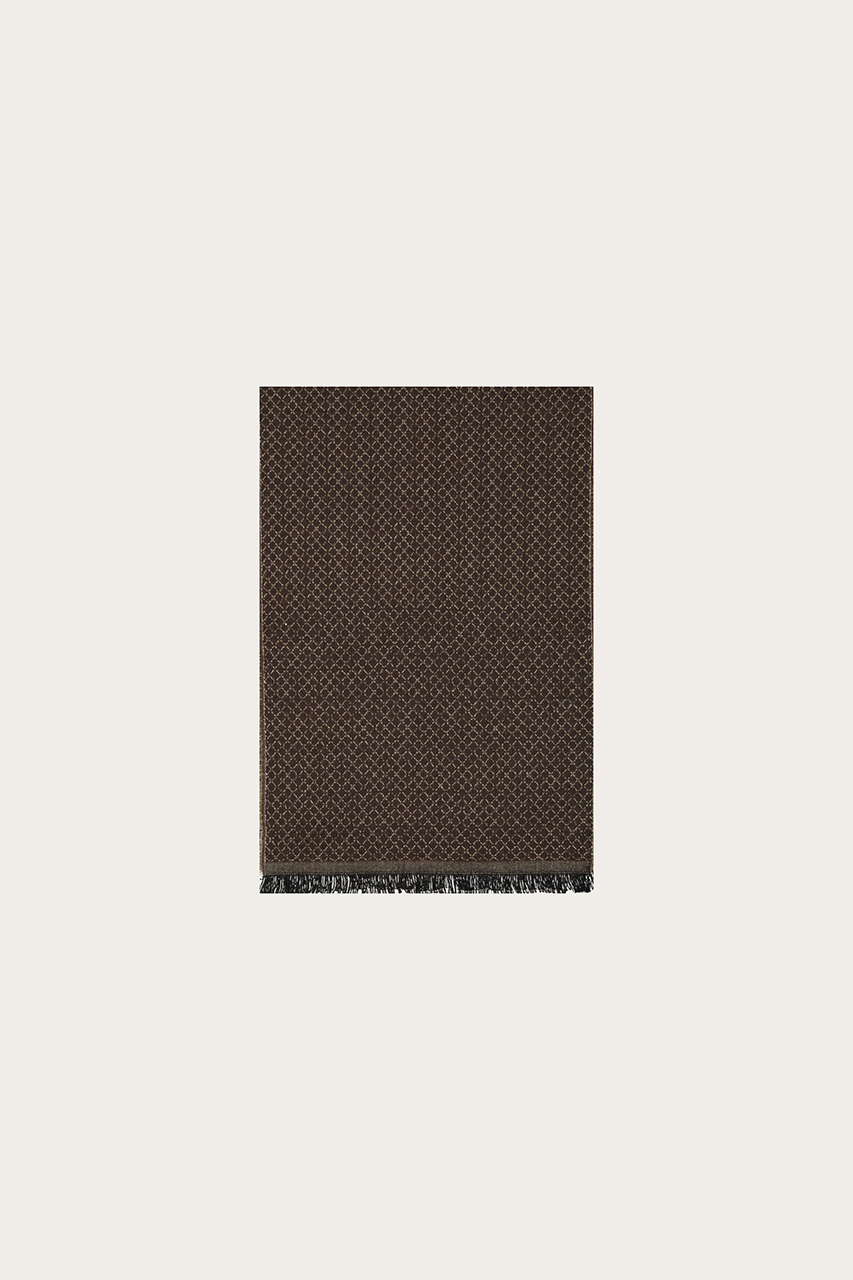 Brązowy szal w mikro wzór, uszyty z przyjemnej i miękkiej w dotyku tkaniny.