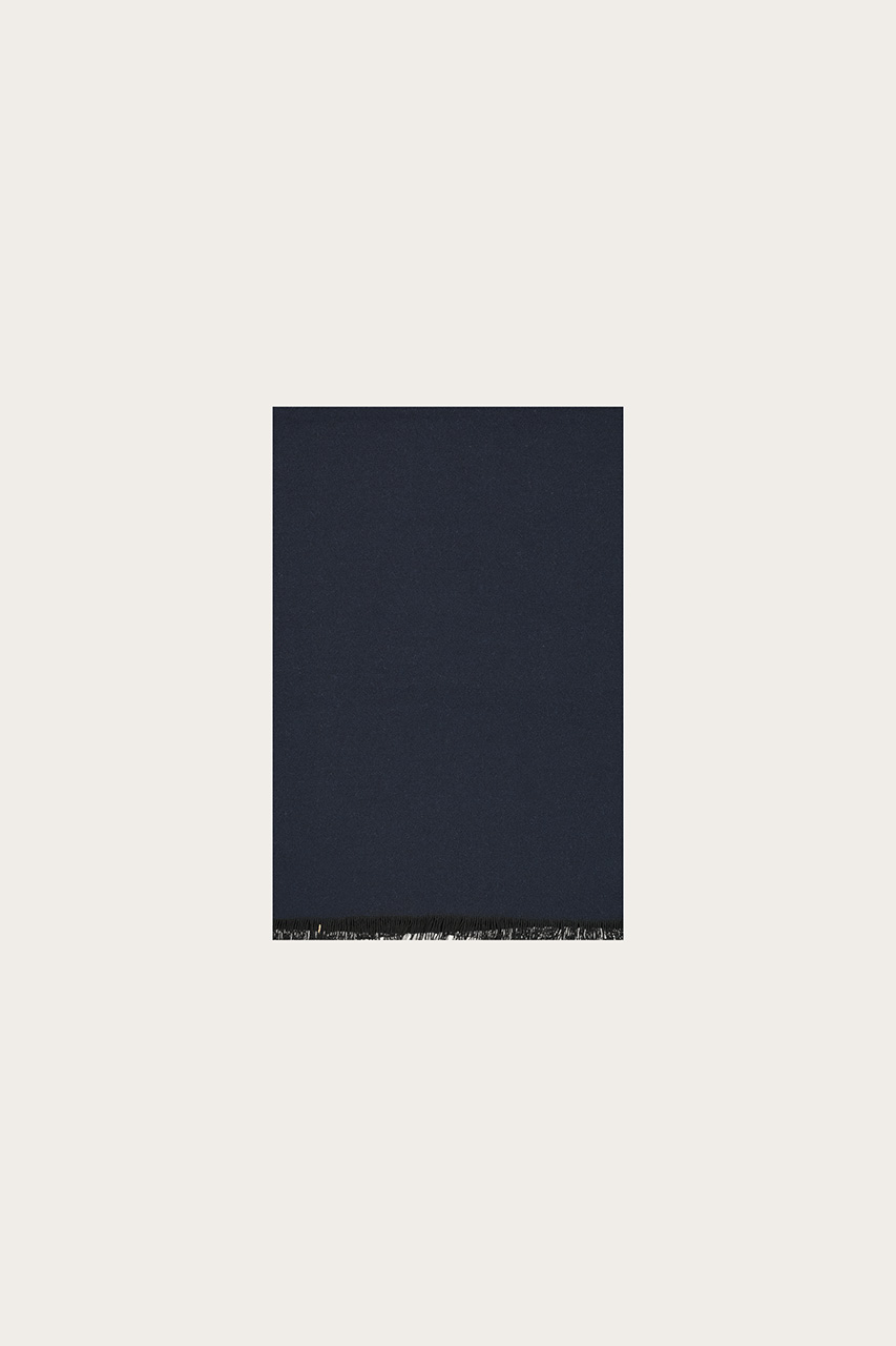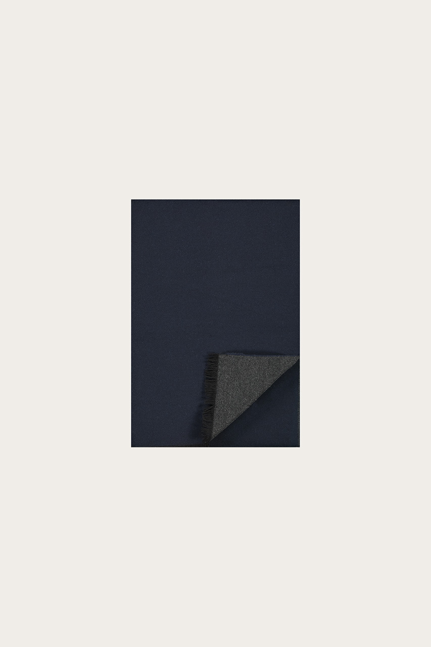 Szal dwustronny, utrzymany w odcieniu granatu i szarego. Uszyty z miękkiej i przyjemnej w dotyku tkaniny.