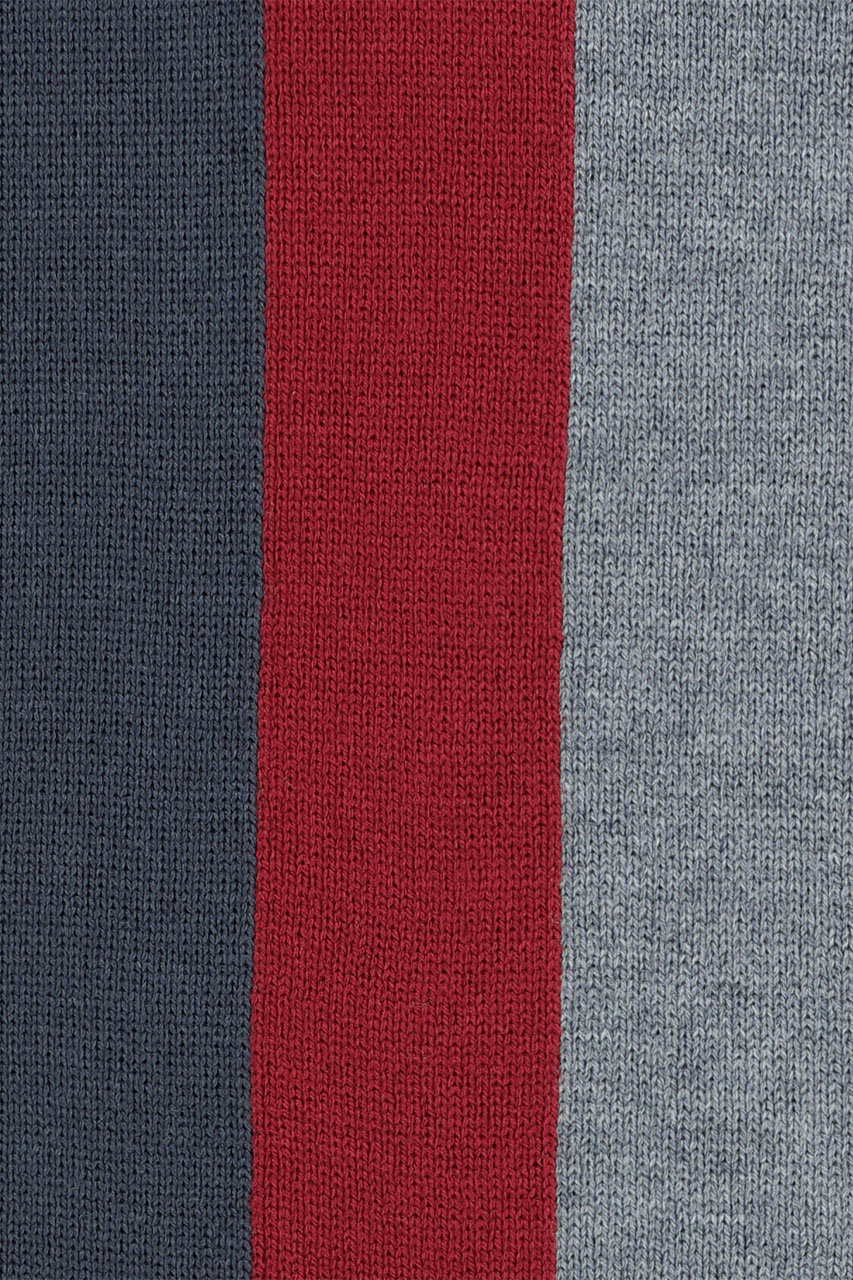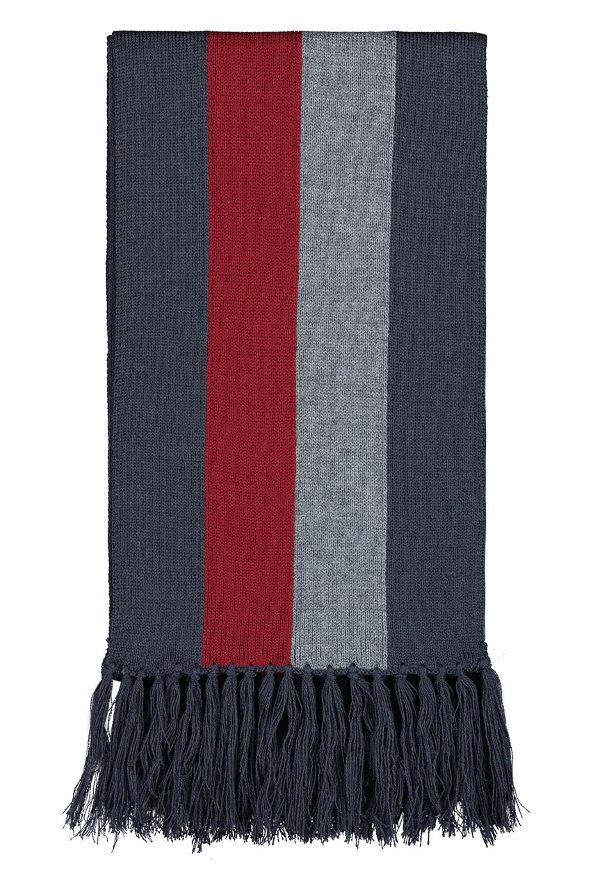 Szal męski wykonany z prążkowanej tkaniny w 50% wełnianej. Bardzo komfortowy model który zapewnia przyjemne ciepło oraz potrzebną cyrkulację powietrza. Propozycja utrzymana w niebieskim, szarym i bordowym odcieniu. Ciekawym akcentem są frędzle, które dodadzą całej stylizacji niebanalnego charakteru. Szal doskonale urozmaici miejskie zestawienia.