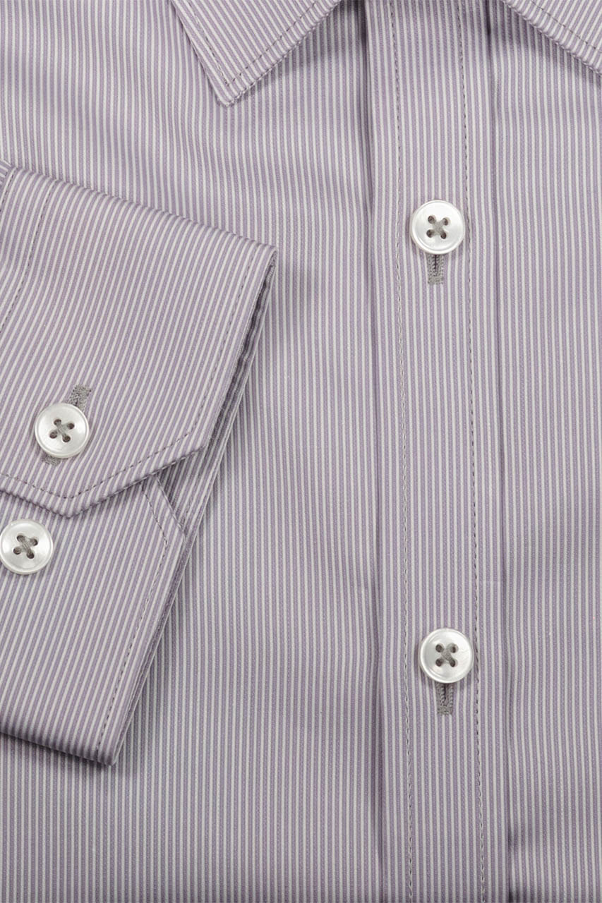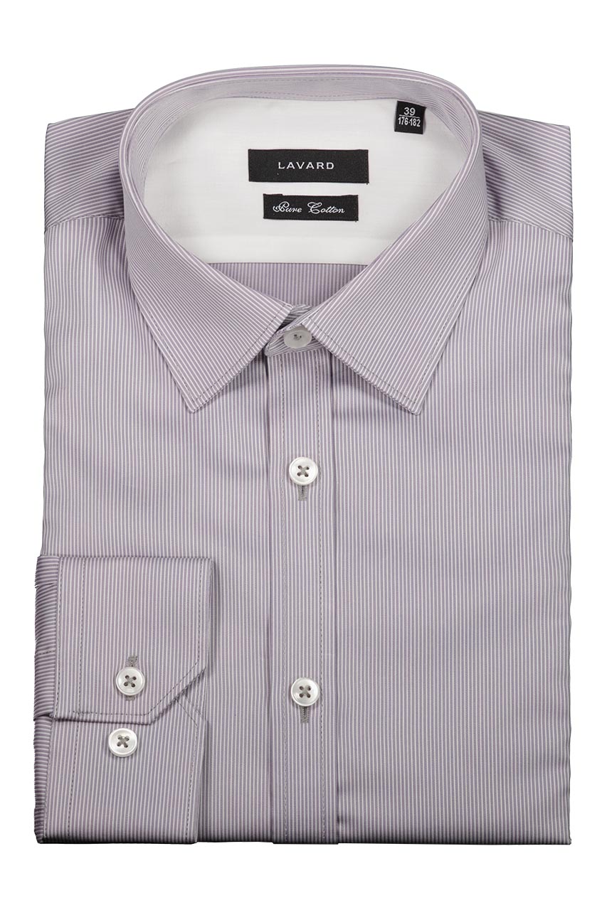 Klasyczna szara koszula męska o taliowanym fasonie slim. Został uszyta z bawełnianej tkaniny w subtelny prążek. Posiada tradycyjny kołnierzyk typu Kent oraz długi rękaw. Sprawdzi się zarówno w stylizacjach biznesowych z garniturem, a także w zestawach smart casualowych z jeansami oraz wełnianą marynarką. Jest ciekawą propozycją, która uzupełni kolekcję koszul każdego mężczyzny.