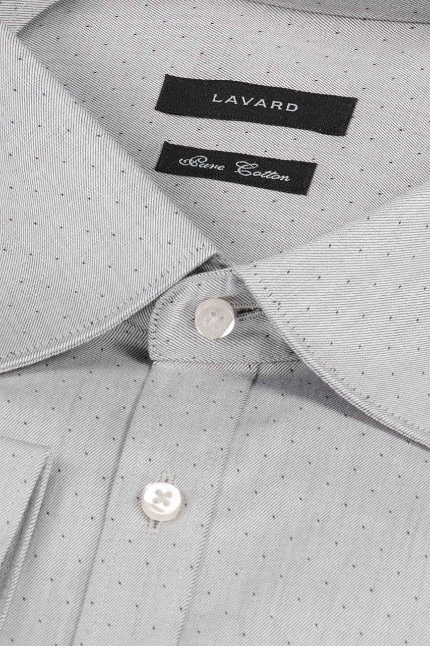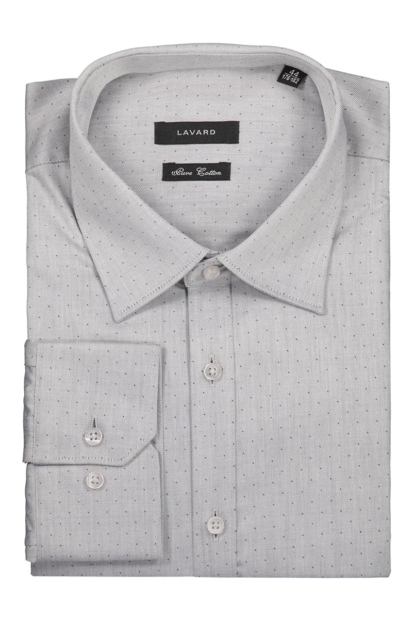 Szara koszula we wzory uszyta z wysokiej jakości bawełny to doskonała propozycja do casualowych zestawień. Koszula jest bardzo komfortowa w użytkowaniu i doskonale współgra zarówno z garniturem jak i z casualową marynarką.