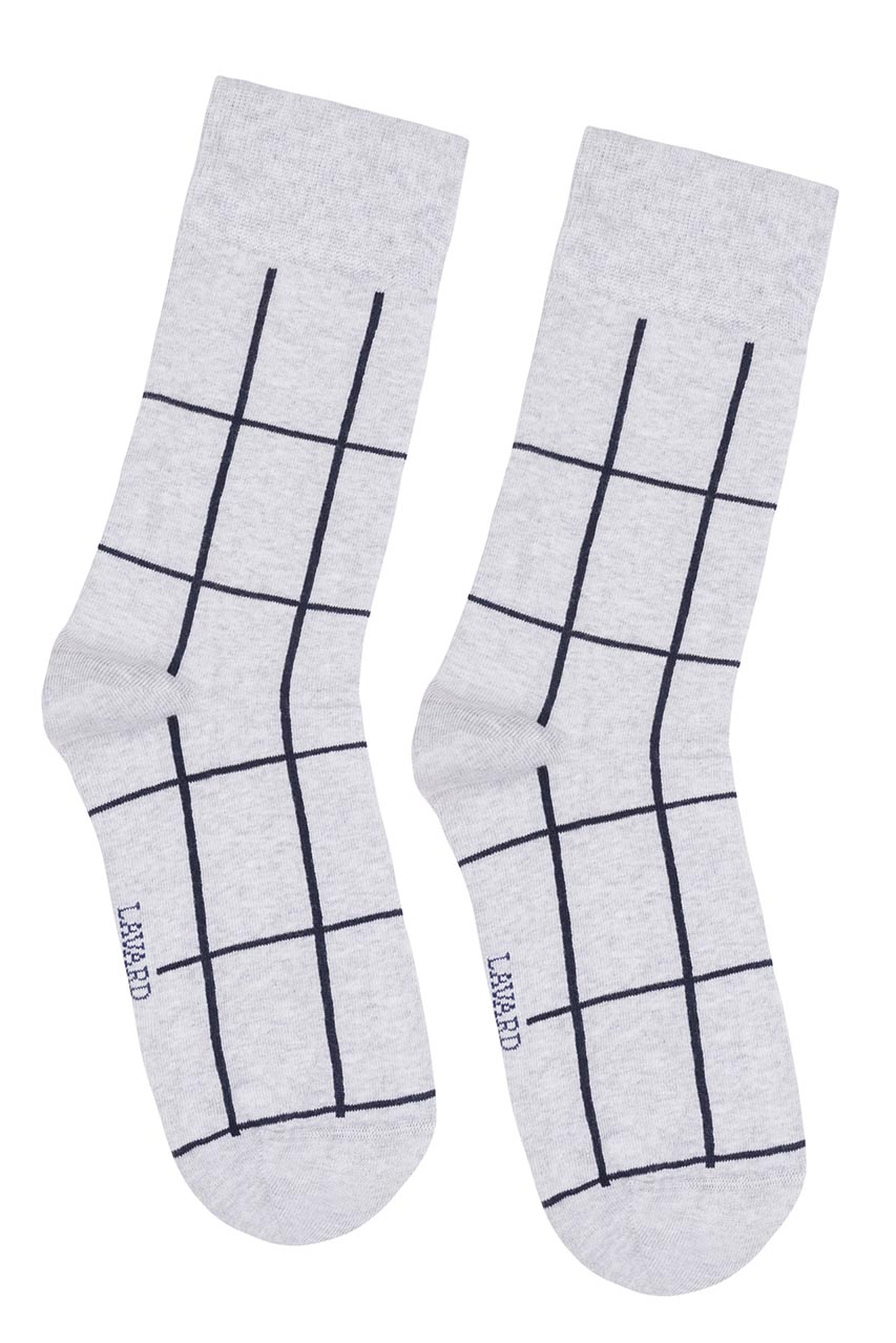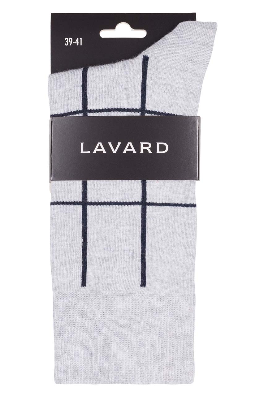 Szare skarpety w kratę. Wykonane z bawełny. Model z eleganckim logiem Lavard na szarym tle. Doskonały dodatek dla stylowych, dbających o swój wygląd mężczyzn. Idealne do stylizacji o casualowym charakterze.