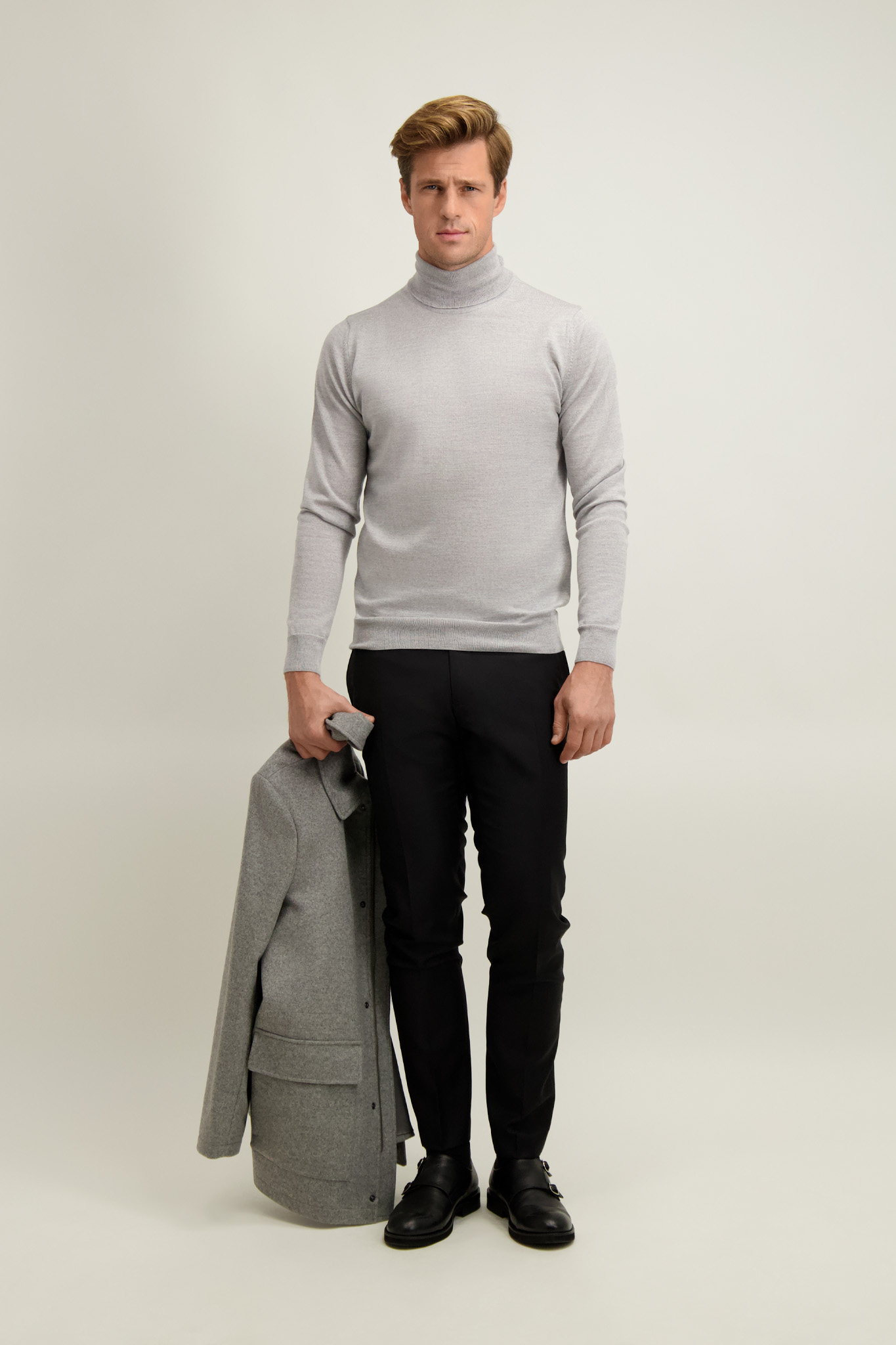 Szary golf męski z wełny merino 74370 - 647871