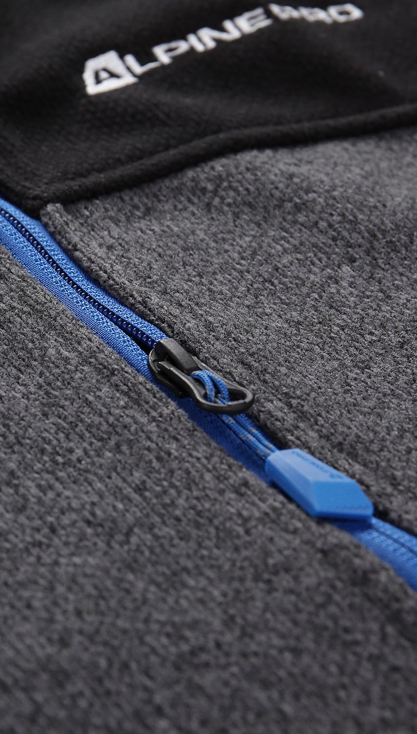 Szary sweter outdoorowy dla mężczyzn. Wykonany z tkaniny zapewniającej doskonałą termoizolację, która równocześnie odprowadza pot na zewnątrz i szybko schnie. Ma zapięcie na niebieski suwak oraz komfortową stójkę z troczkami. Uniwersalne połączenie kolorów przypadnie do gustu każdemu aktywnemu mężczyźnie, a sweter sprawdzi się znakomicie podczas wymagających warunków atmosferycznych oraz górskiego trekkingu.