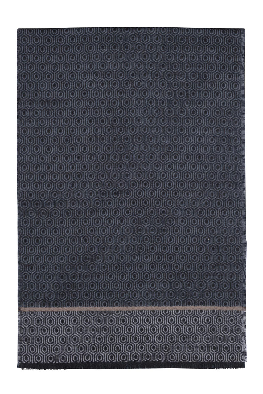 Męski szal we wzory, utrzymany w szarej kolorystyce. Wykonany z gładkiego, przyjemnego w dotyku materiału. Model o wymiarach 30x180 cm. Doskonały dodatek do casualowych stylizacji.