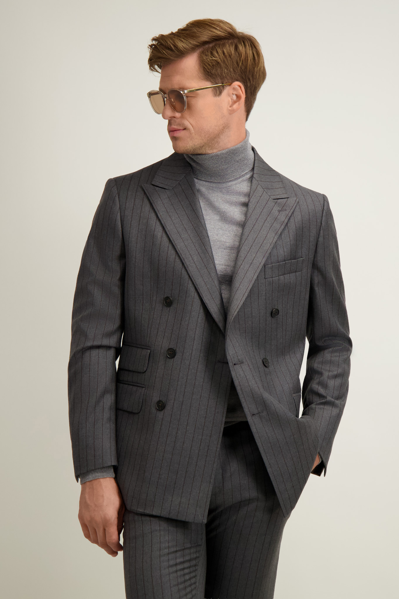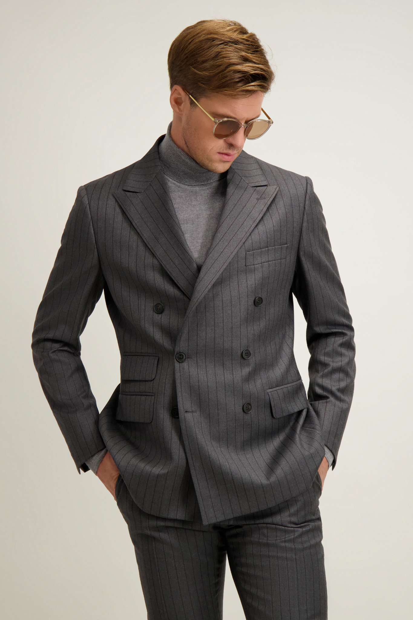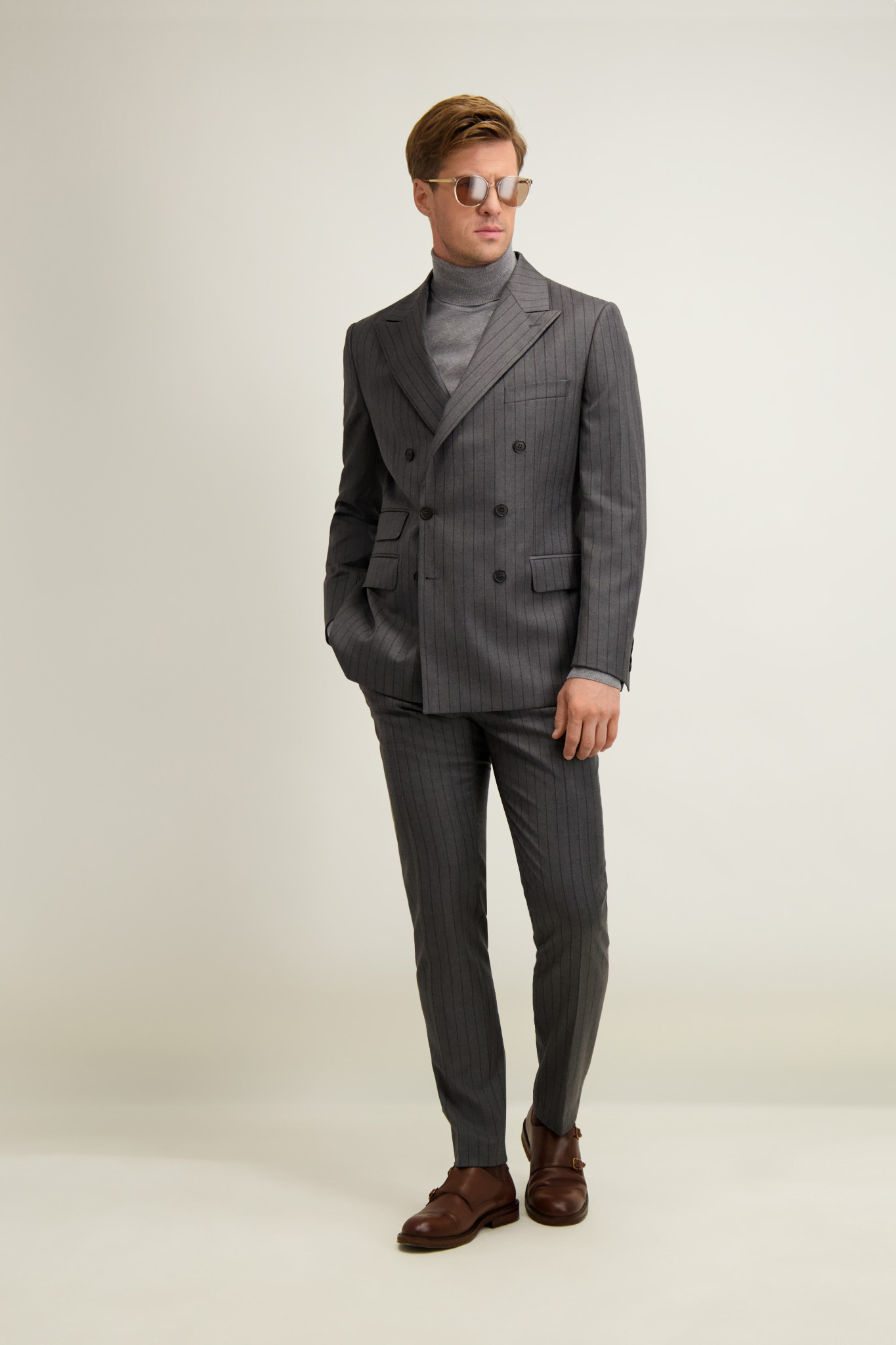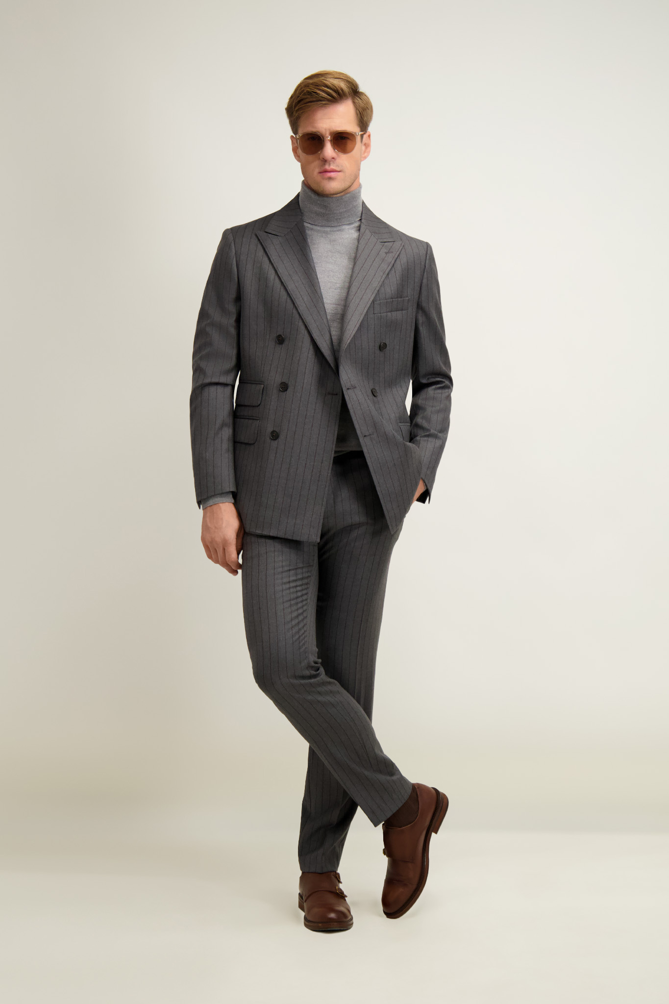 Szary wełniany garnitur męski 35514